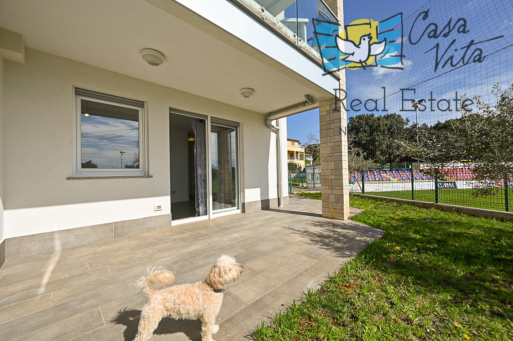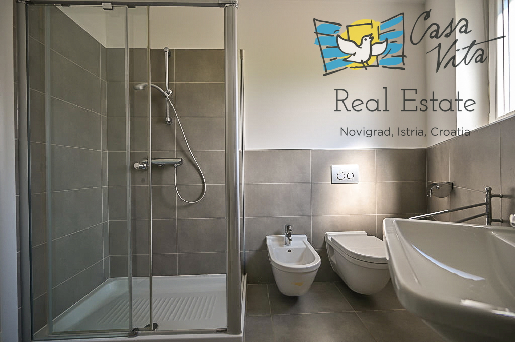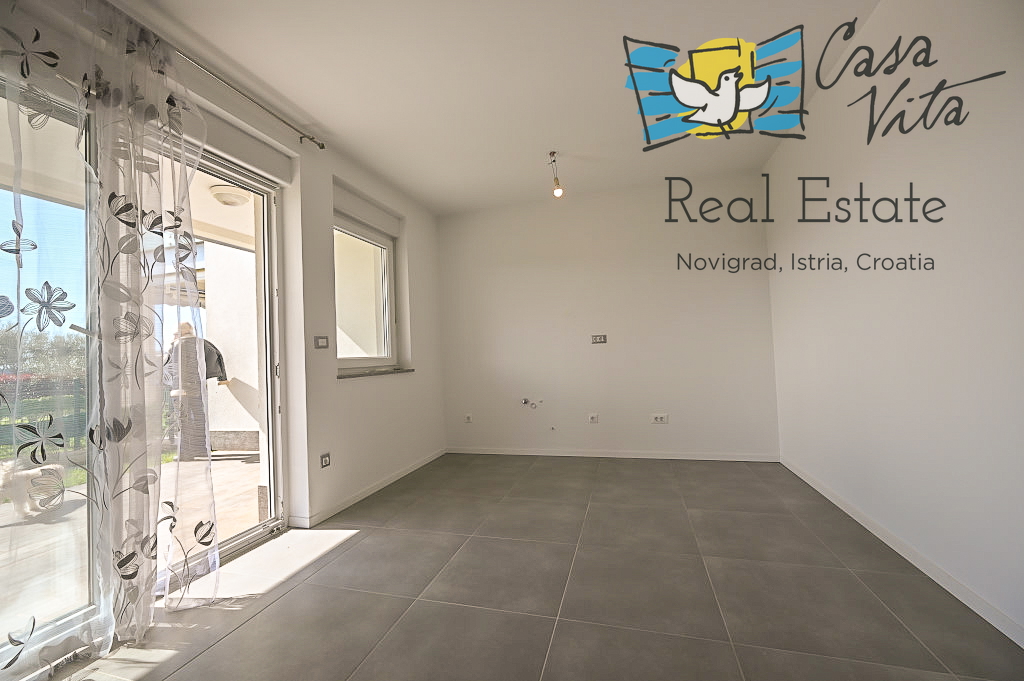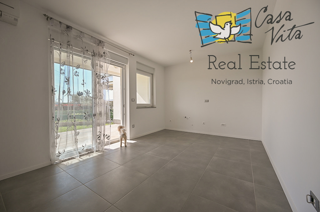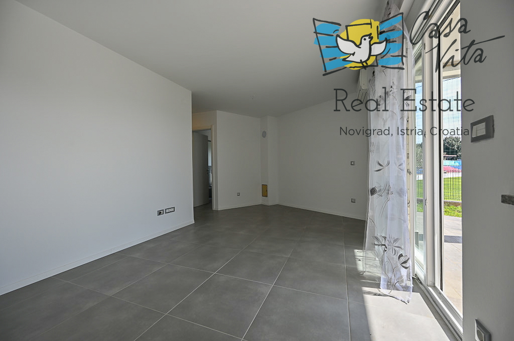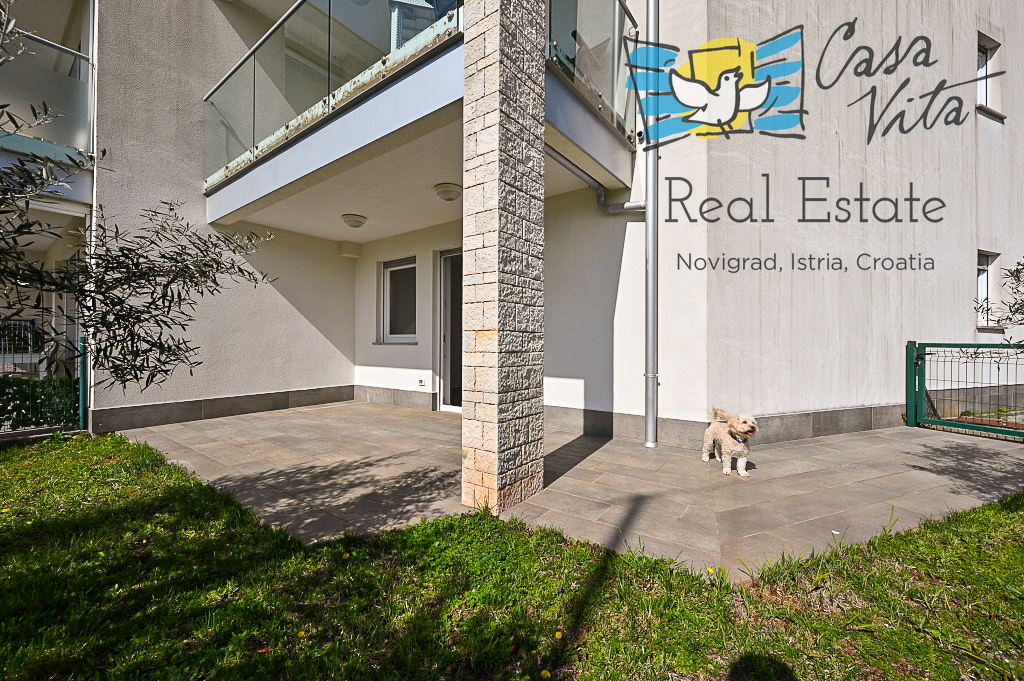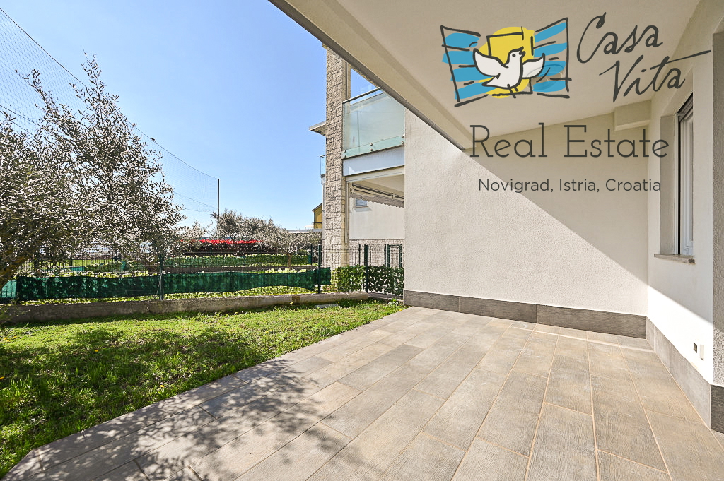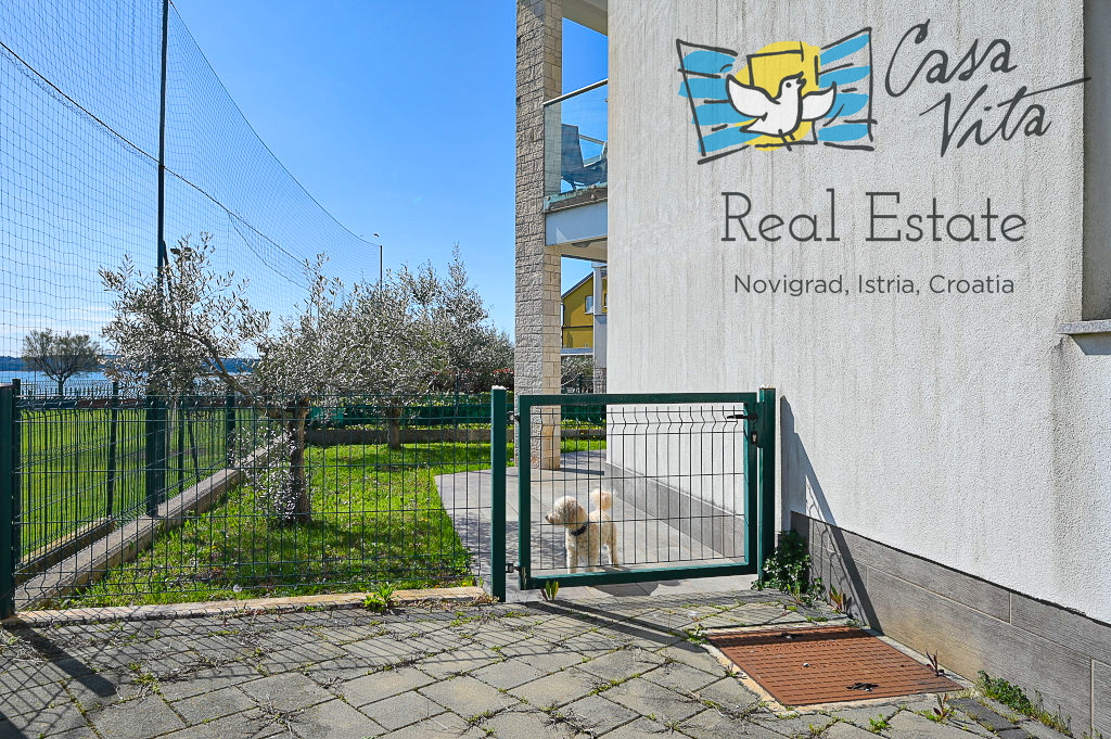 Es wird eine Wohnung mit einer Fläche von 43 m2 zum Verkauf angeboten, die sich im Erdgeschoss eines Wohngebäudes an einer äußerst attraktiven Lage in Novigrad befindet.
