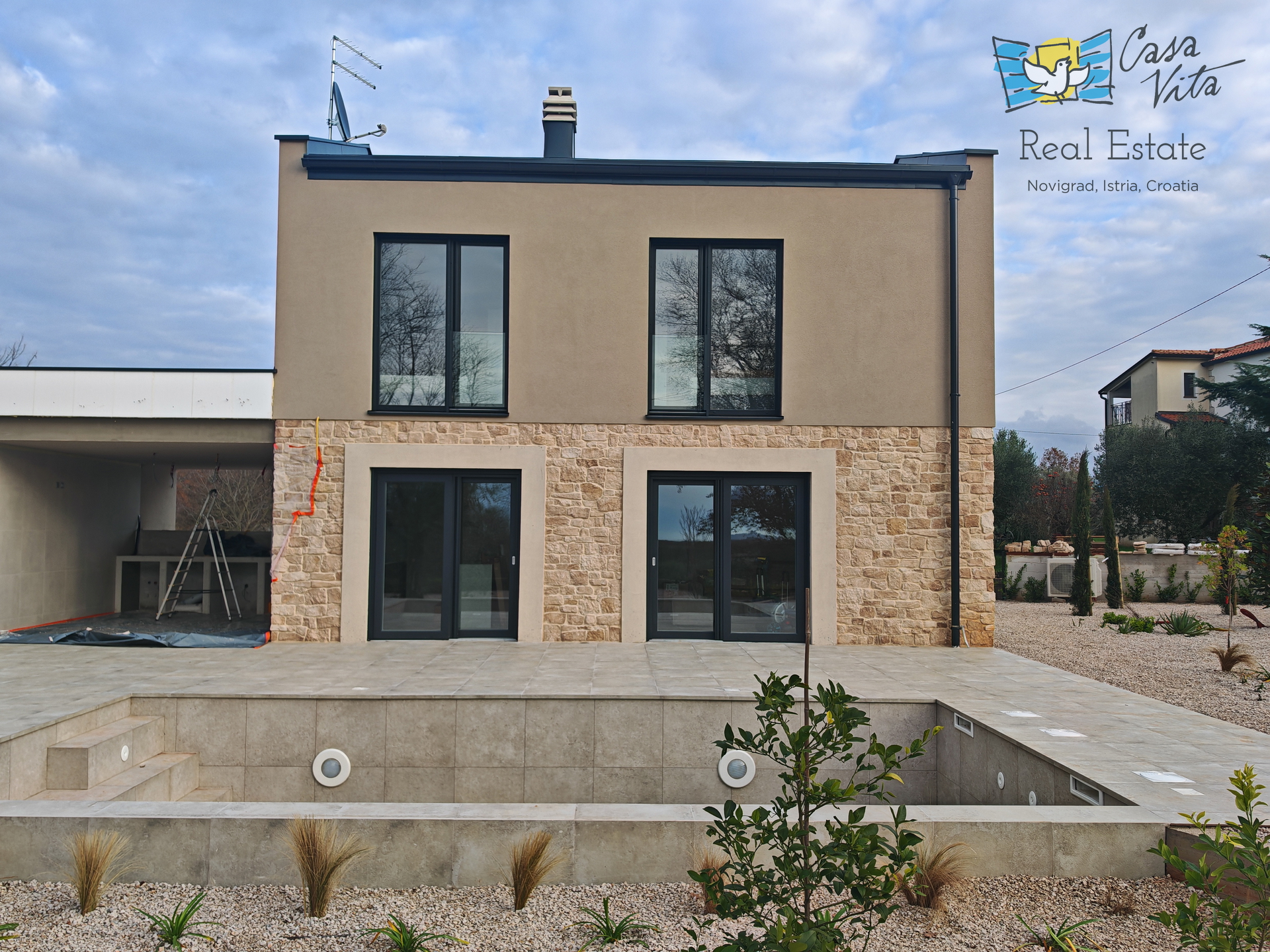 Wir präsentieren Ihnen ein Doppelhaus mit einer Fläche von 120 m2, gelegen in einem ruhigen Teil der Umgebung von Novigrad, erbaut im Jahr 2026. Diese Immobilie mit drei Schlafzimmern bietet einen modernen und funktionalen Raum, ideal für Familien oder Investoren, die eine Immobilie an einem attraktiven Standort suchen.