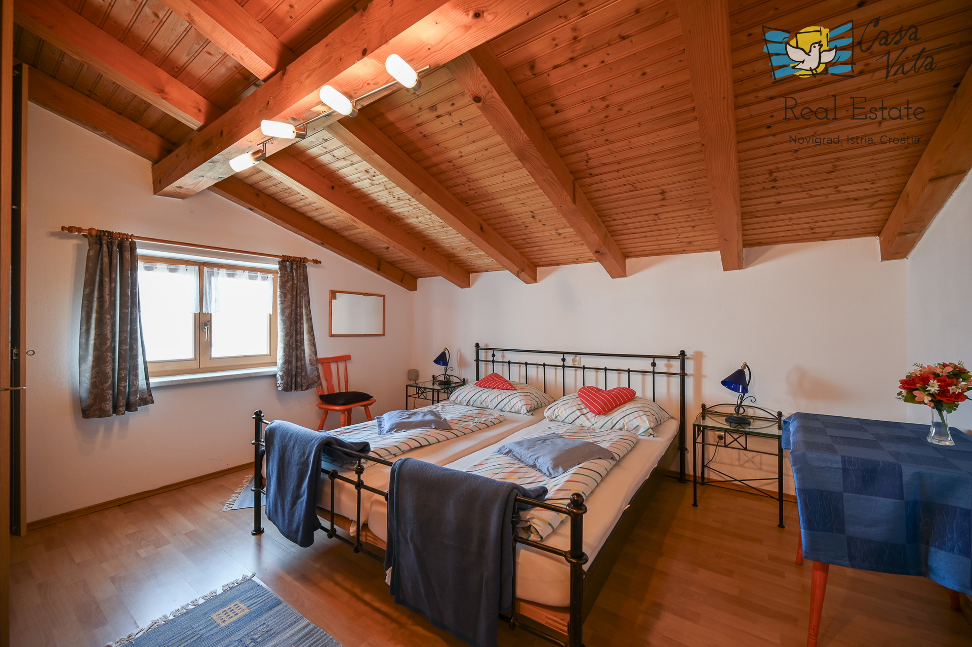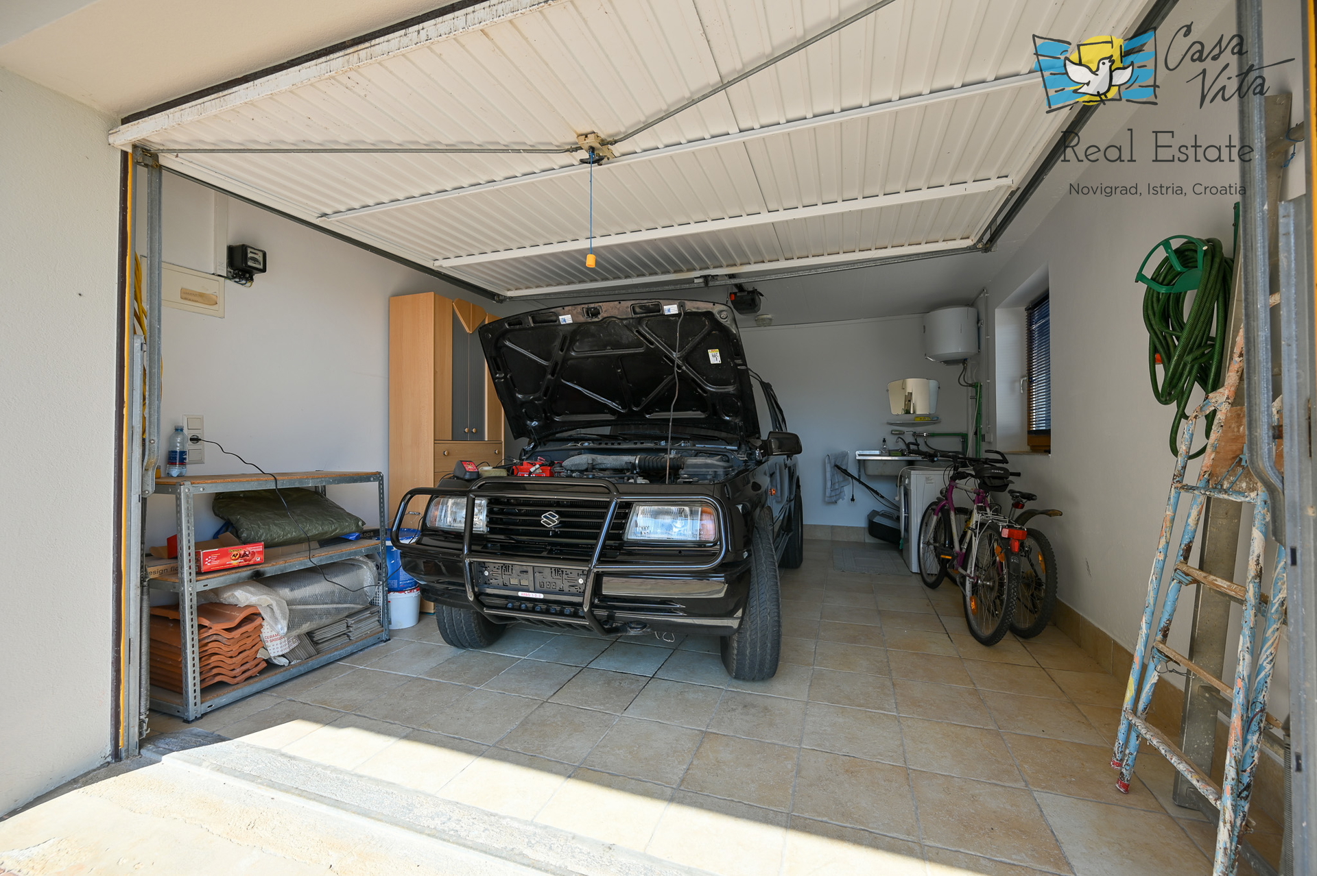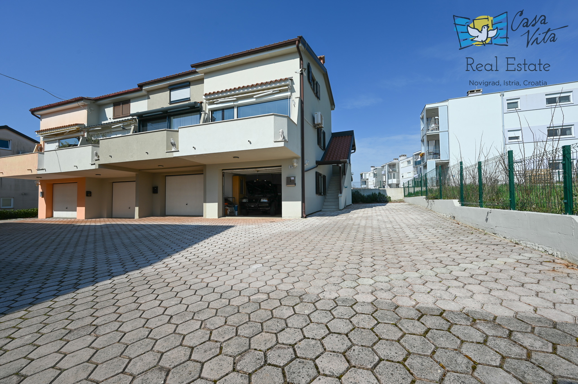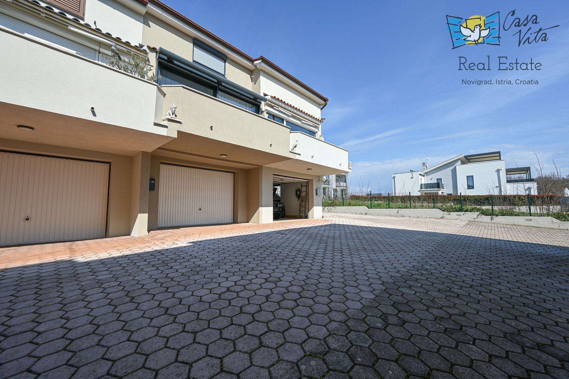 Zum Verkauf steht ein geräumiges Reihenendhaus, das aus einem 28 m2 großen Studio und einer 18 m2 großen Garage im Erdgeschoss sowie einer 55,80 m2 großen Wohnung mit zwei Schlafzimmern im ersten Stock und Dachgeschoss besteht, gelegen in einem ruhigen Teil von Novigrad. Diese Immobilie stellt eine ausgezeichnete Gelegenheit für das Wohnen mit der Familie oder als Investition dar, dank ihrer Funktionalität und Lage.