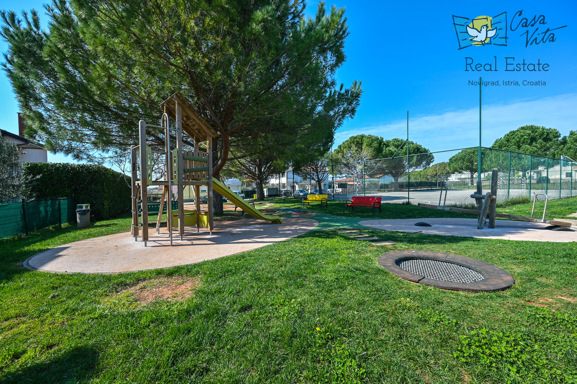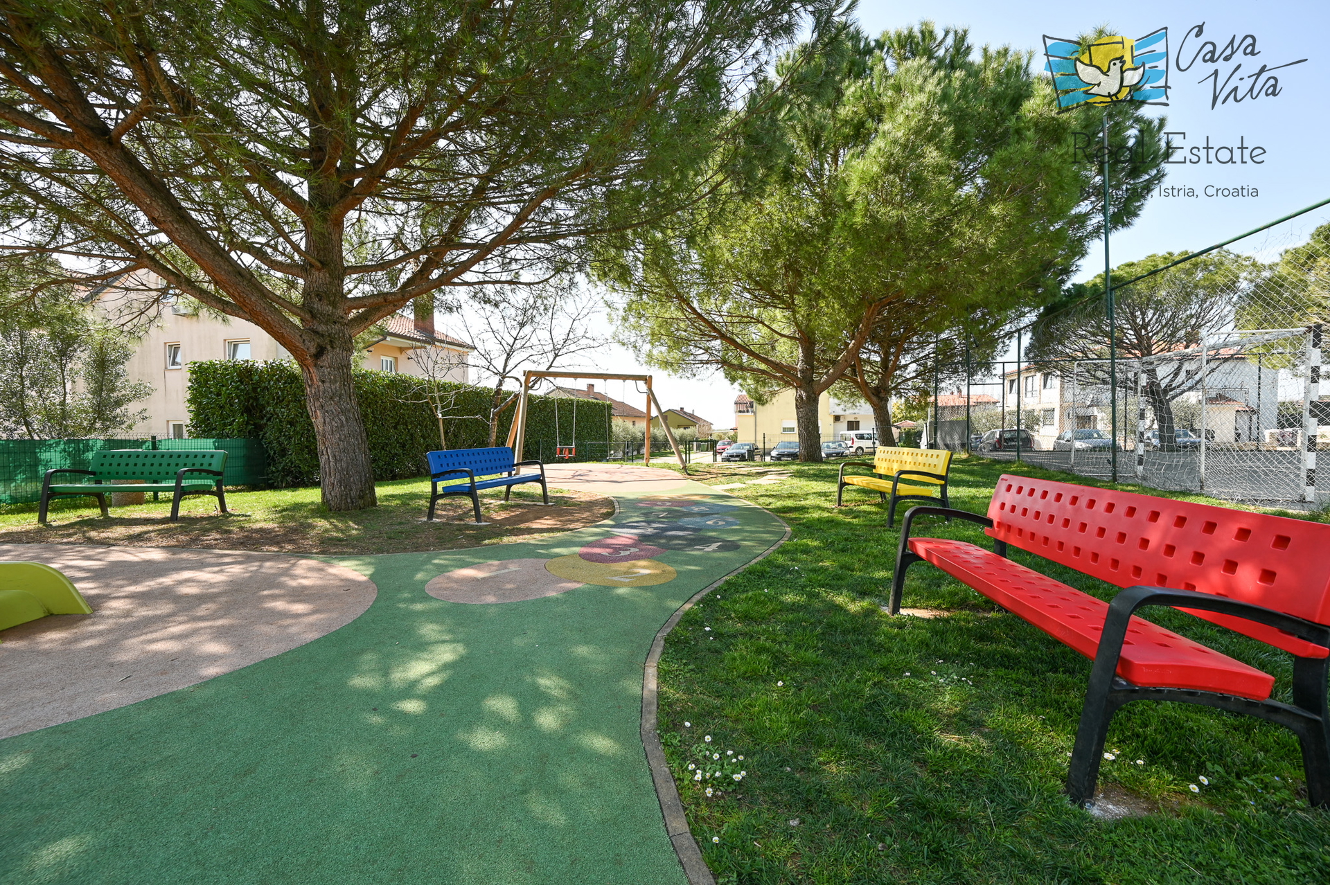 Die Immobilie grenzt an einen Kinderspielplatz/Spielraum, was sie ideal für Familien mit kleinen Kindern macht.