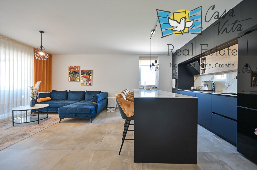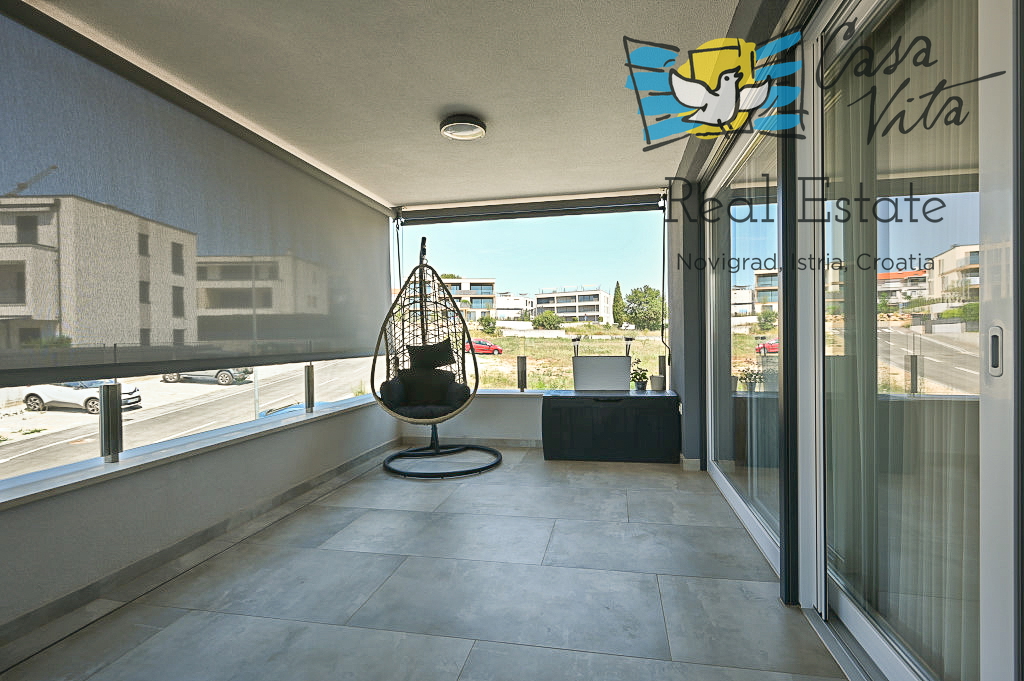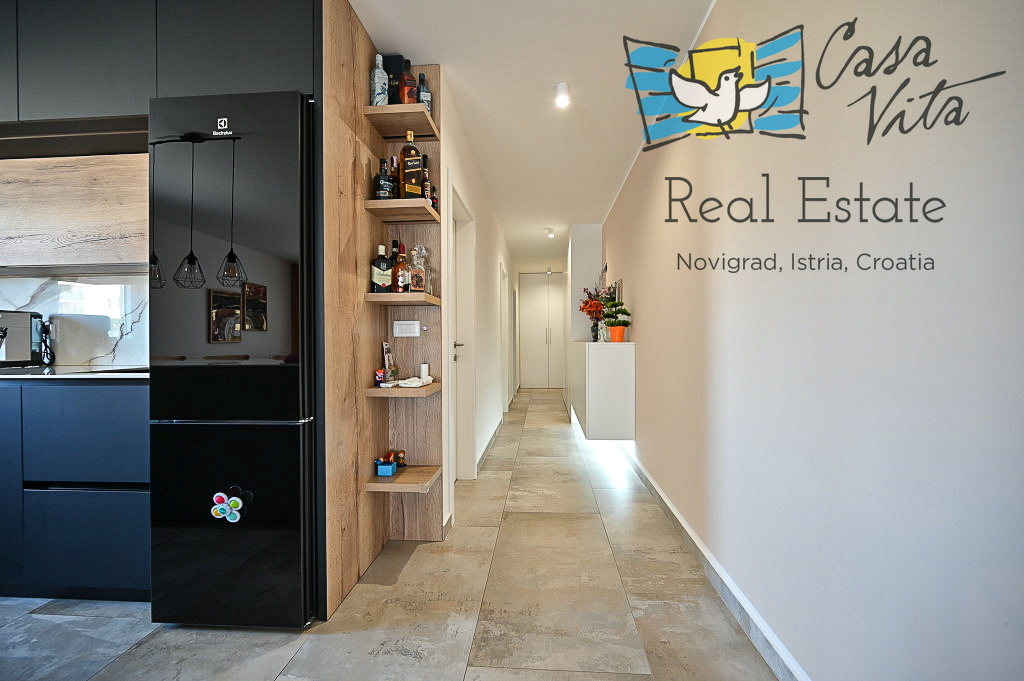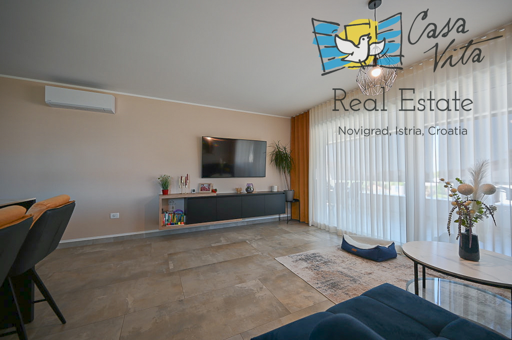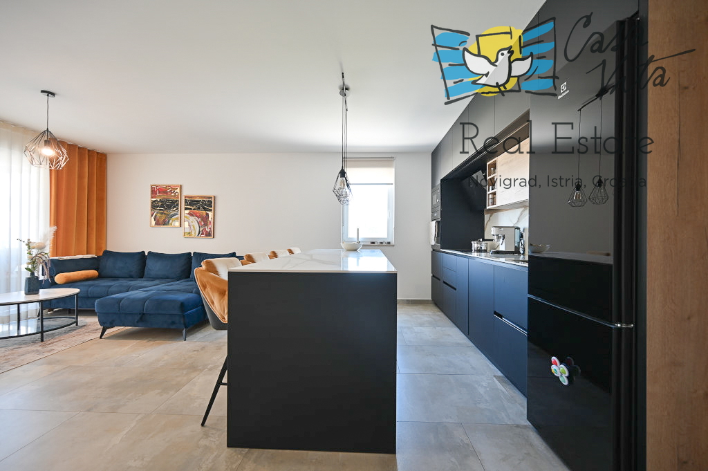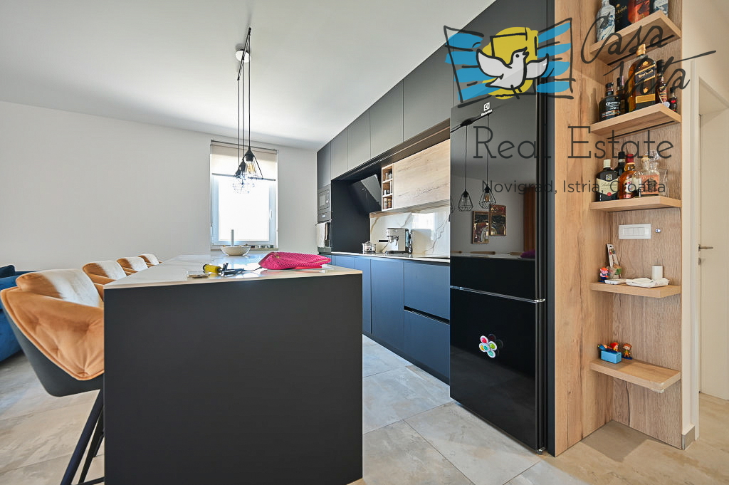 A modern apartment for sale, type 2.5-room (2BR+DB), with an area of 82 m2, located on the first floor of a new building constructed in 2022 in an attractive part of Novigrad.