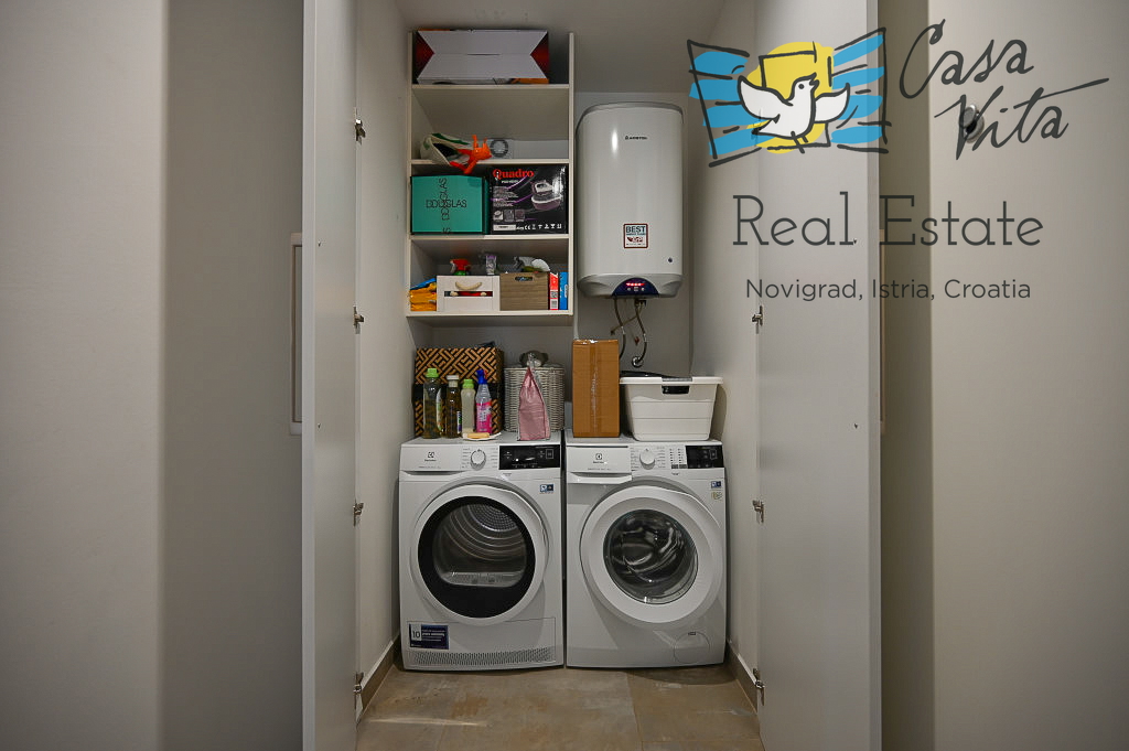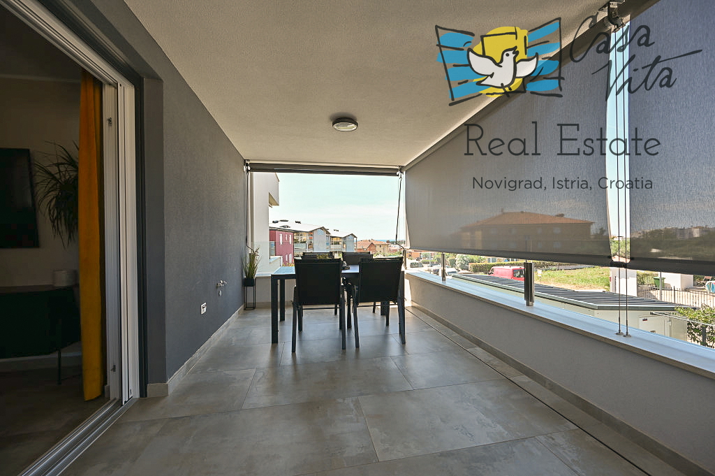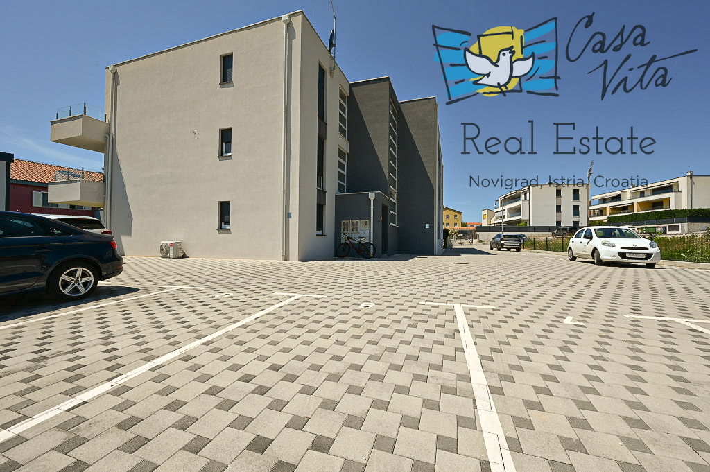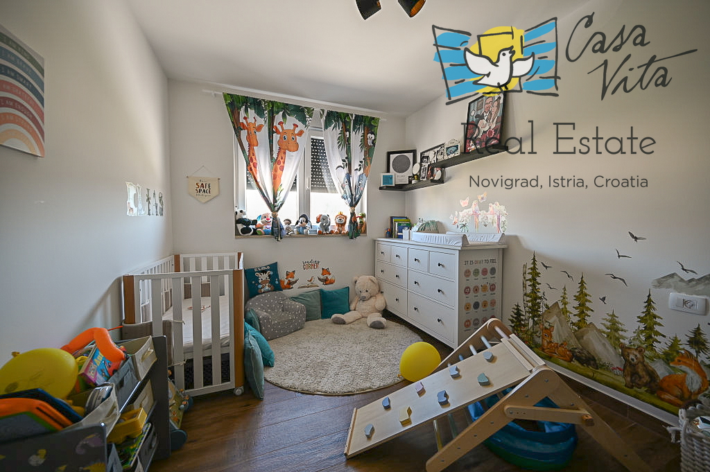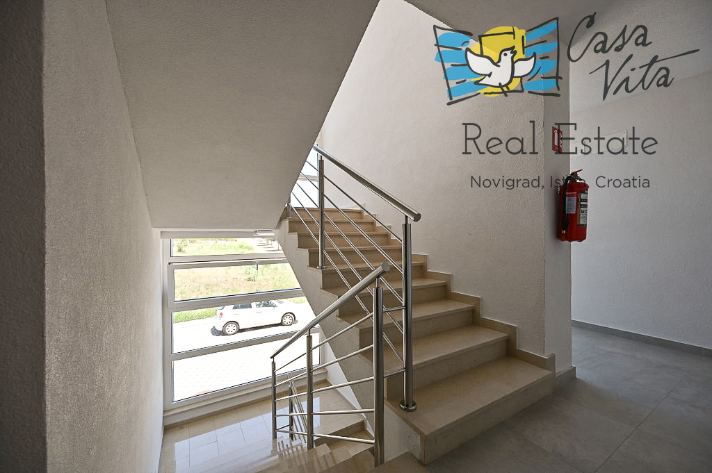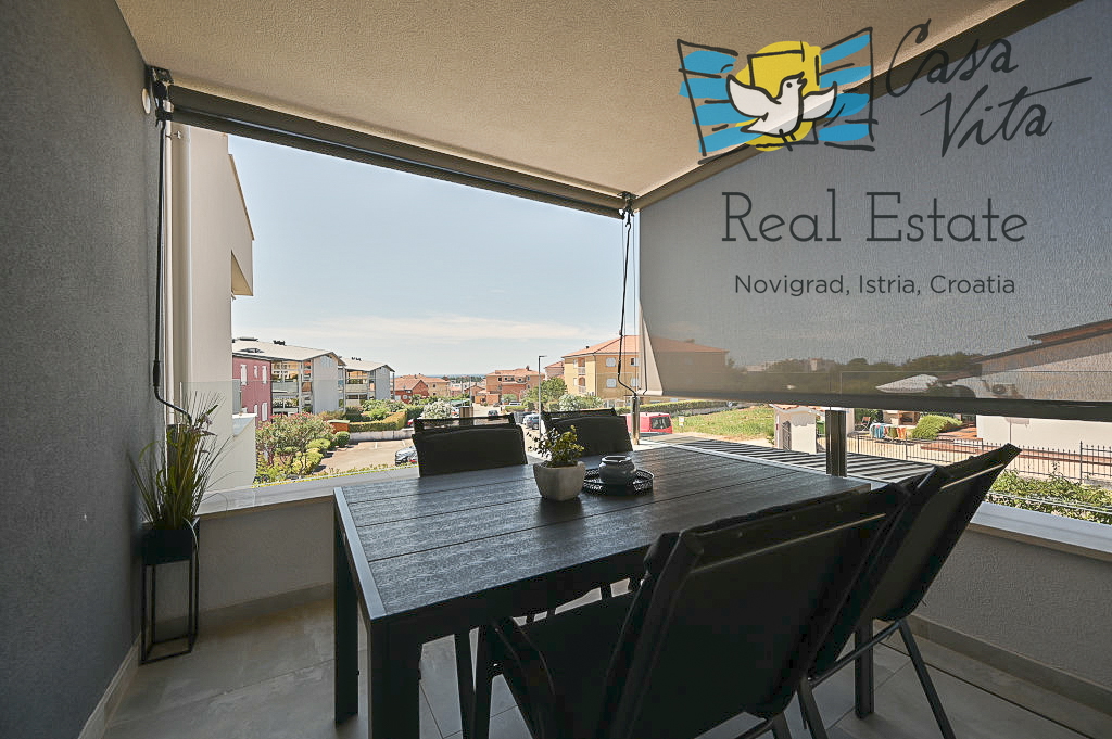 A modern apartment for sale, type 2.5-room (2BR+DB), with an area of 82 m2, located on the first floor of a new building constructed in 2022 in an attractive part of Novigrad.