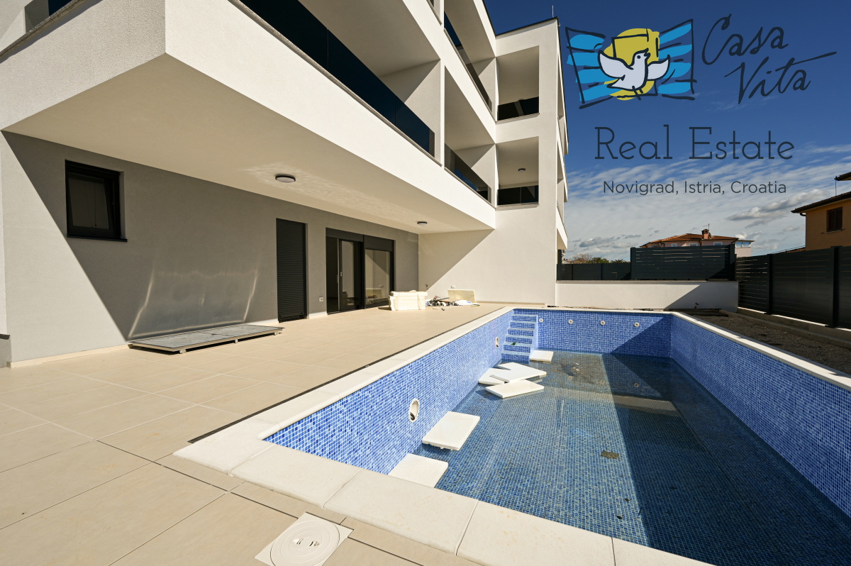 Spacious three-bedroom apartment with an area of 123 m2 for sale, located on the ground floor of a modern building constructed in 2025, in an attractive and quiet location in Novigrad. This property is distinguished by exceptional sunlight and is situated in close proximity to the sea and the town center, making it an ideal choice for families as well as investors looking for a property in an excellent location.