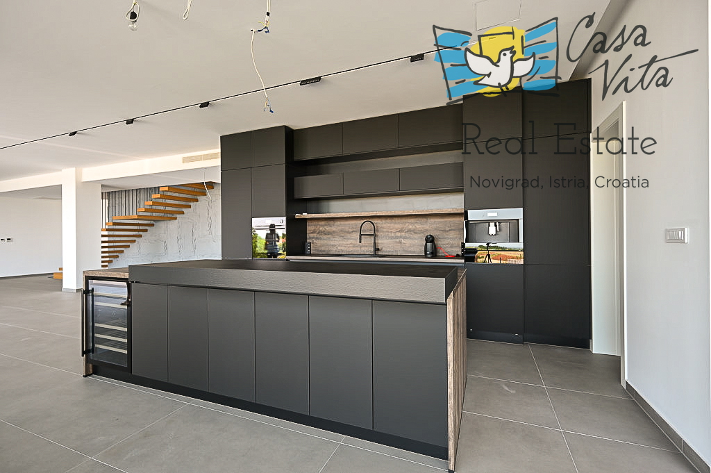 Predstavljamo vrhunsku vilu građenu 2025. godine, smještenu na izuzetno atraktivnoj lokaciji u Poreču, s jugozapadnom orijentacijom koja omogućuje obilje prirodnog svjetla i prekrasan pogled na more. Ova luksuzna vila ističe se svojom modernom arhitekturom i sofisticiranim dizajnerskim rješenjima, čineći je savršenim izborom za one koji traže spoj elegancije, komfora i suvremene tehnologije.