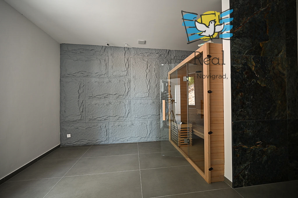 U pogledu opreme i sigurnosti, vila nudi smart home sustav, video nadzor, alarm, protuprovalna vrata te satelitsku TV. Podno grijanje i klima uređaj omogućuju ugodnu temperaturu tijekom cijele godine, a sauna dodatno doprinosi osjećaju luksuza. Posebna pogodnost je punionica za električni automobil te dostupnost vanjskog dizala, što olakšava svakodnevicu i čini objekt pristupačnim osobama sa smanjenom pokretljivošću.