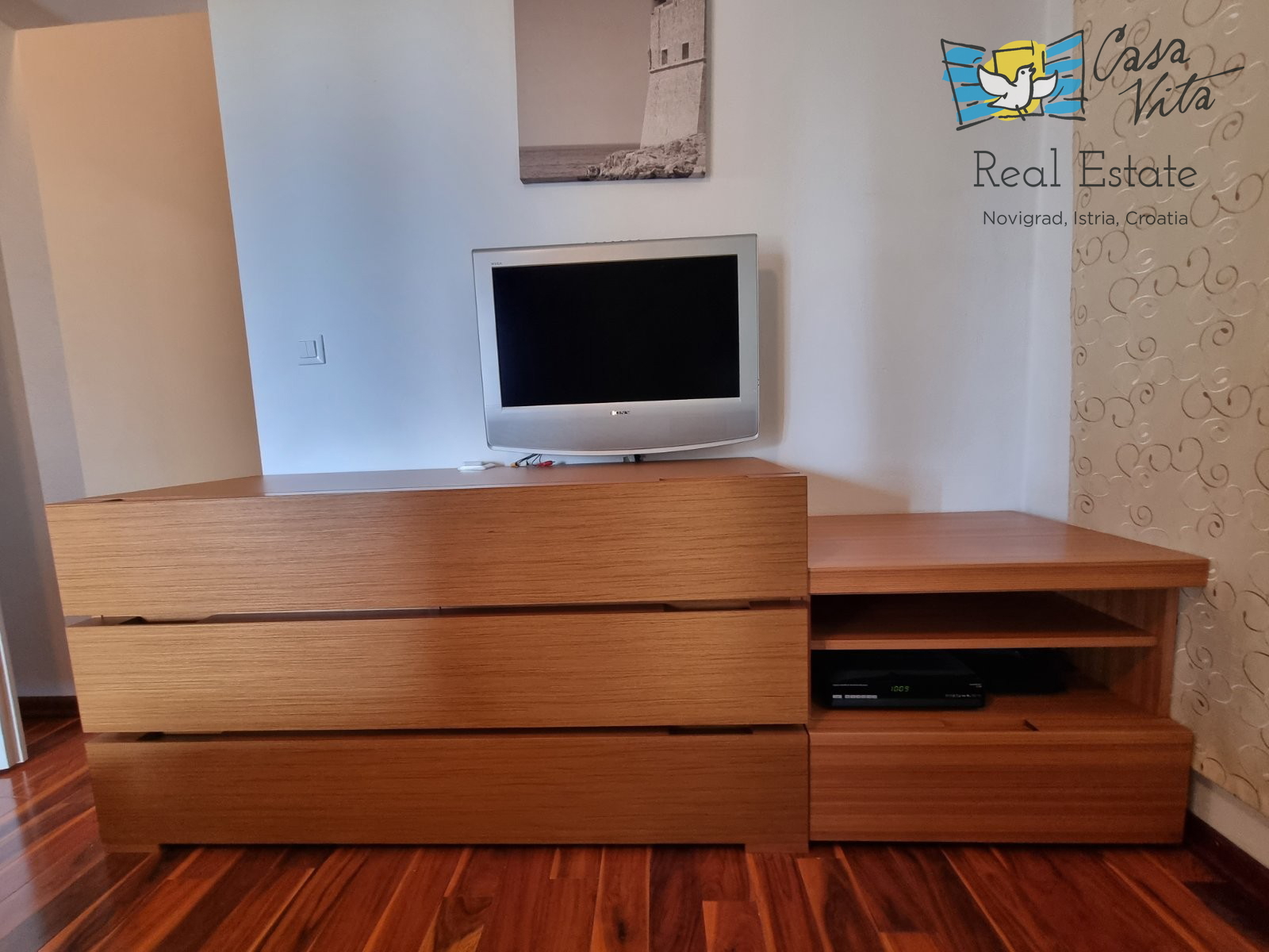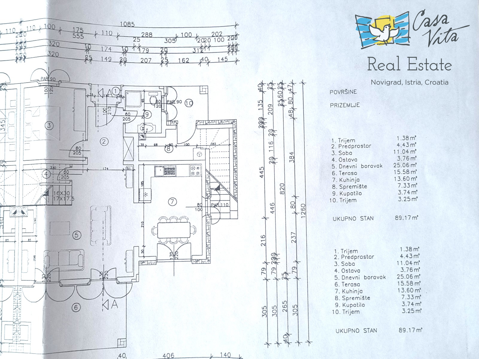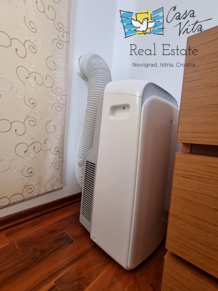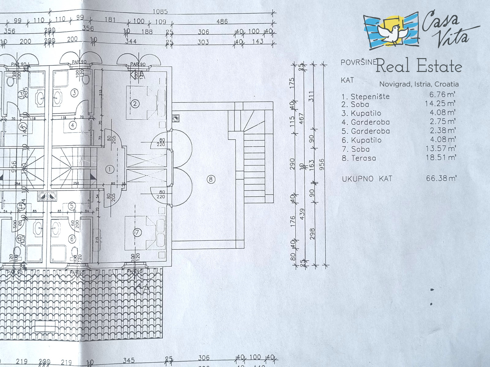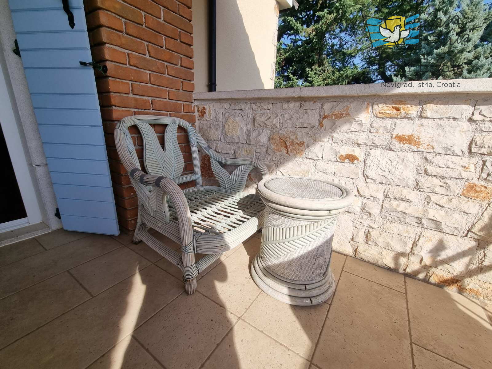 Prodaje se prekrasna dvojna kuća nalazi se na mirnoj lokaciji nedaleko od Poreča i svega 1 km od mora. Sagrađena je 2006. godine, a vlasnici su je renovirali 2021. godine, te ju kontinuirano održavaju. Kupili su je i koristili isključivo za svoje potrebe, kuća nije nikada iznajmljivana! Ukupno ima 155,55 m2 sa terasama (135 m2 zatvorenog prostora), na parceli od 367 m2. Vrta ima 200 m2. Kuća se sastoji od prizemlja i kata, mediteransko-rustikalnog je stila. U prizemlju se nalaze hodnik, spavaća soba, kupaona, veliki dnevni boravak sa kaminom i kuhinja sa blagovanom. Iz dnevnog boravka i kuhinje izlazi se na natrkivenu terasu gdje se nalazi još jedan kamin i stol za ručavanje, te u vrt. Na katu se nalaze još dvije spavaće sobe svaka sa svojim kupatilom, koje dijele prostranu natkrivenu terasu. Terasa je vanjskim stubištem povezana sa vrtom. Vrt je prekrasno uređen sa mediteranskim biljkama, starom maslinom, uređenim travnjakom, te bazenom od 30 m2. Uz bazen je napravljena mala kamena vrtna kućica od 7 m2 gdje je predviđeno sve za saunu ili može služiti kao spremište. Uz bazen i kućicu se nalazi vanjski tuš. Kuća ima 2 parkirna mjesta. Cijeli vrt je zatvoren zidom, zelenilom ili metalnom ogradom. U stražnjem dijelu kuće, blizu bazena, nalazi se spremište/kotlovnica i ljetna kuhinja. Kuća se prodaje sa namještajem koji je izrađen za cijelu kuću po mjeri. Grijanje je regulirano centralno na lož ulje. Pokretna klima je instalirana samo u jednoj spavaćoj sobi. Instaliran je i alarm te video kamere. Kuća može biti odmah useljiva!