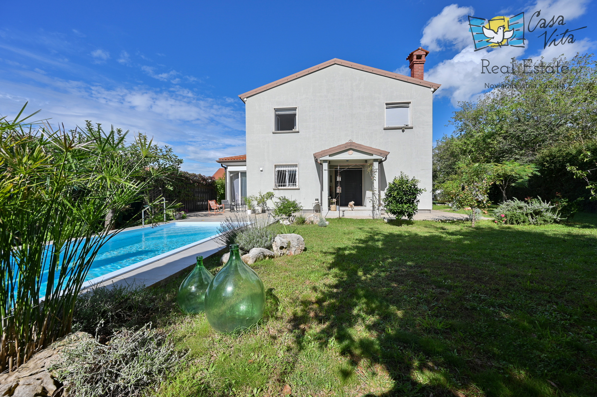 Među dodatnim sadržajima ističu se zatvoreni balkon (zimski vrt) , dvorište, ostava/skladište, natkriveno parkiralište, vrt, protuprovalna vrata, ljetna kuhinja i vrtna kućica Kuća je opremljena klima uređajem i plinskim grijanjem, što omogućuje ugodnu temperaturu tijekom cijele godine. Uz to, na raspolaganju je i bazen, idealan za opuštanje i zabavu u sunčanim danima.