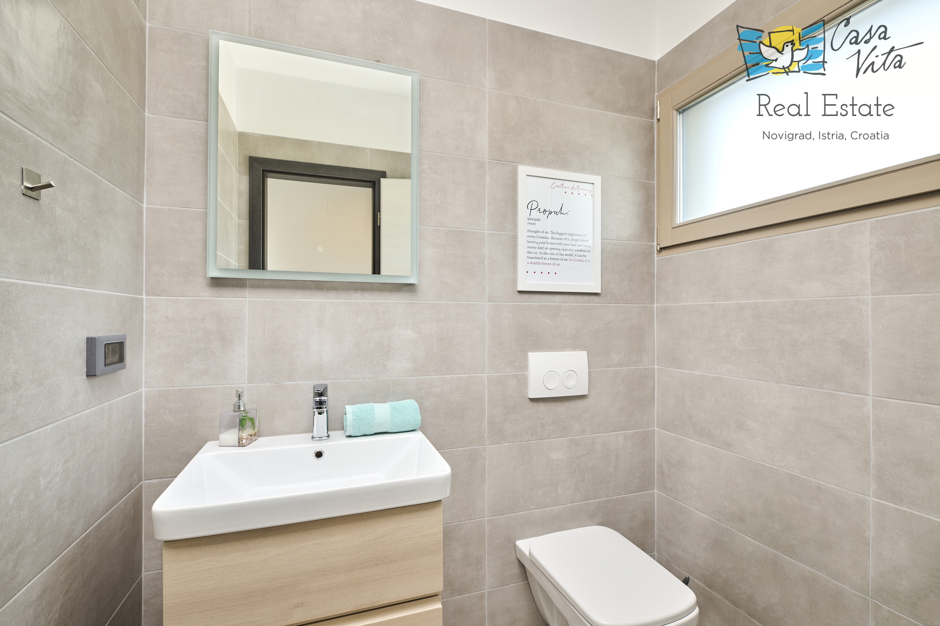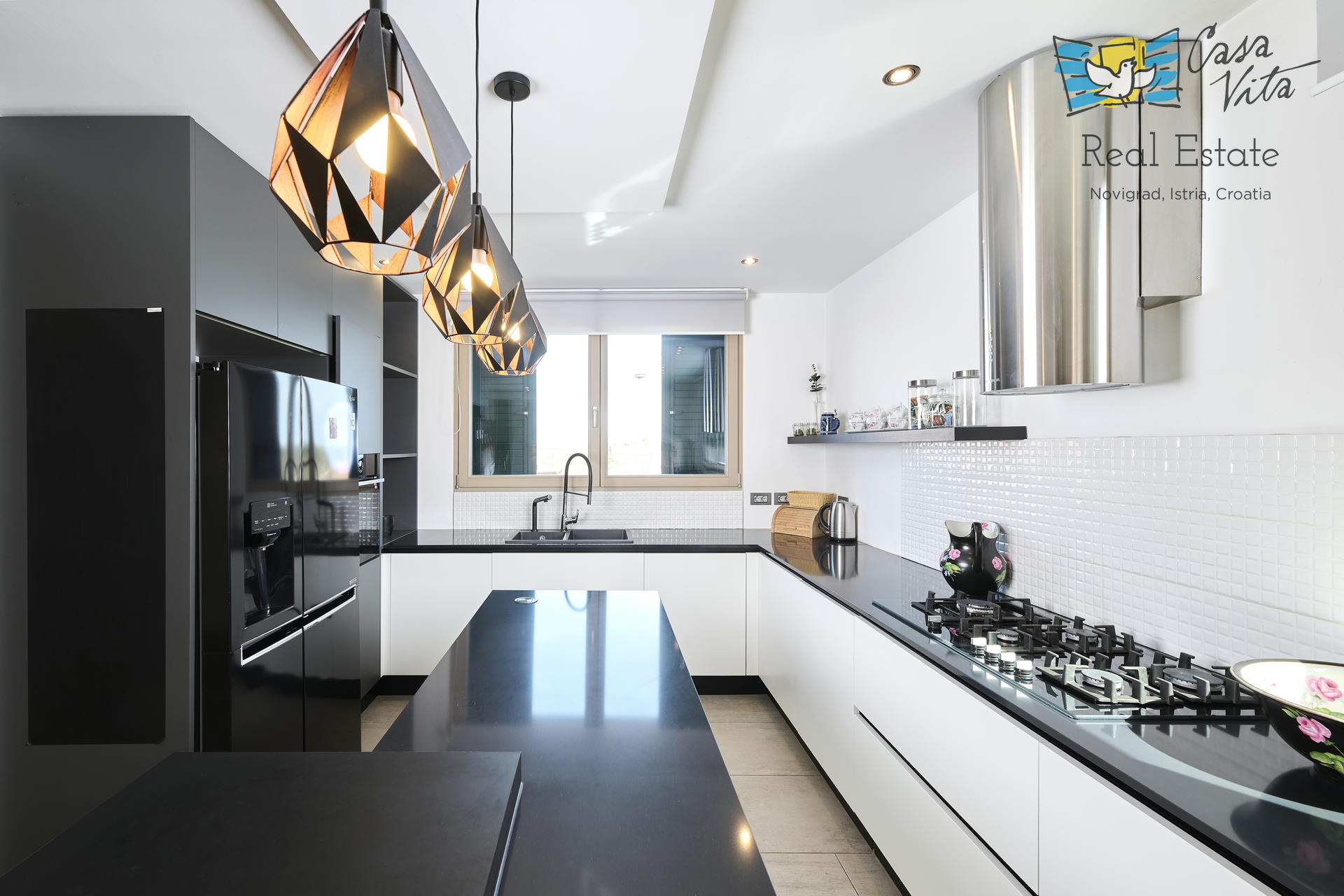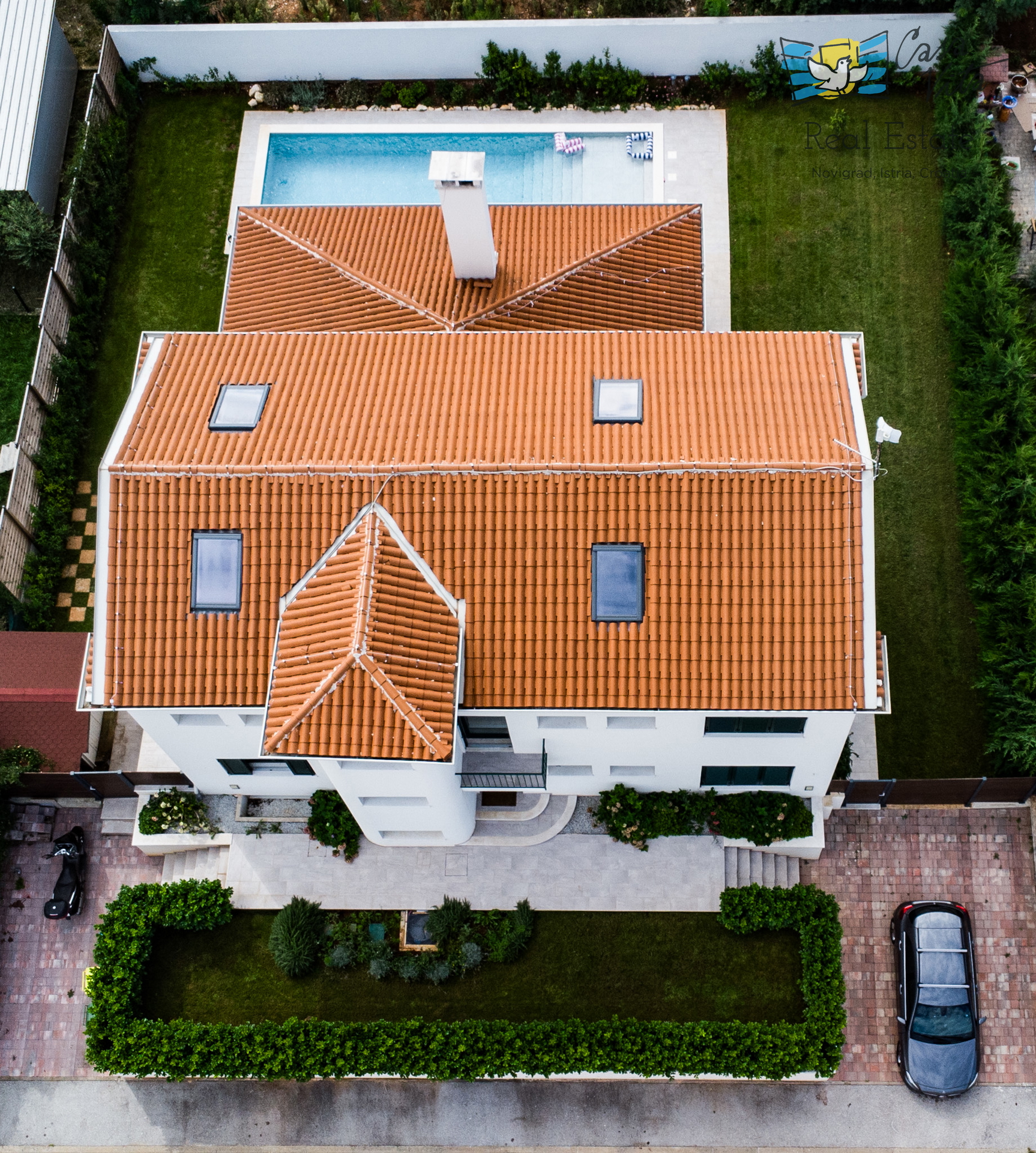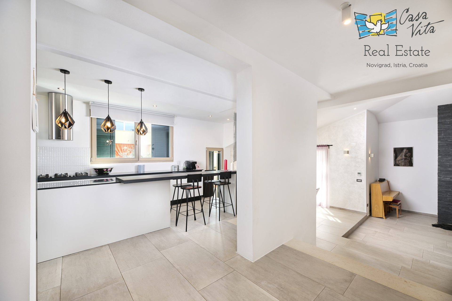 Nekretnina je projektirana i izgrađena kao obiteljska kuća kako bi pružila funkcionalan životni prostor za obitelj i prijatelje. Ukupno ima 380 m2, na parceli od 710 m2. Prizemlje je otvorenog tlocrta s kuhinjom koja vodi do blagovaonice i dnevnog boravka koji se ljeti otvaraju na vanjski dnevni boravak s blagovaonicom ispod natkrivene terase. Na ovom katu se nalazi i spavaća soba s kupaonicom (ensuite) te zaseban WC.