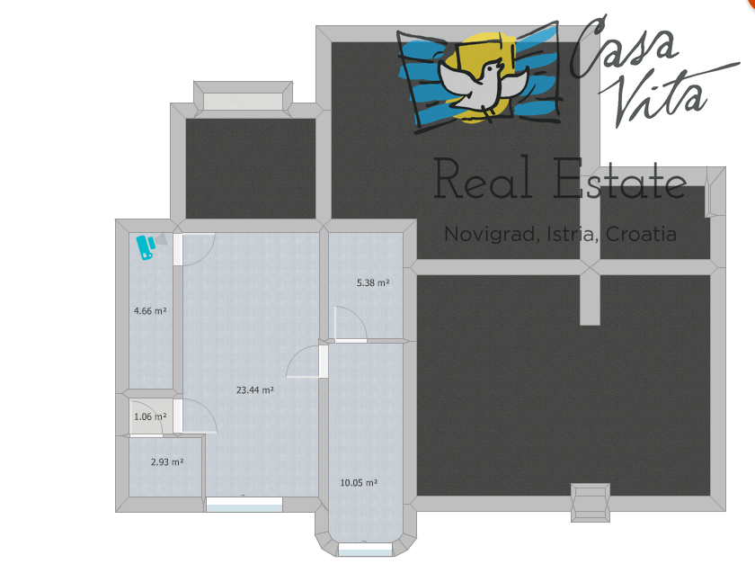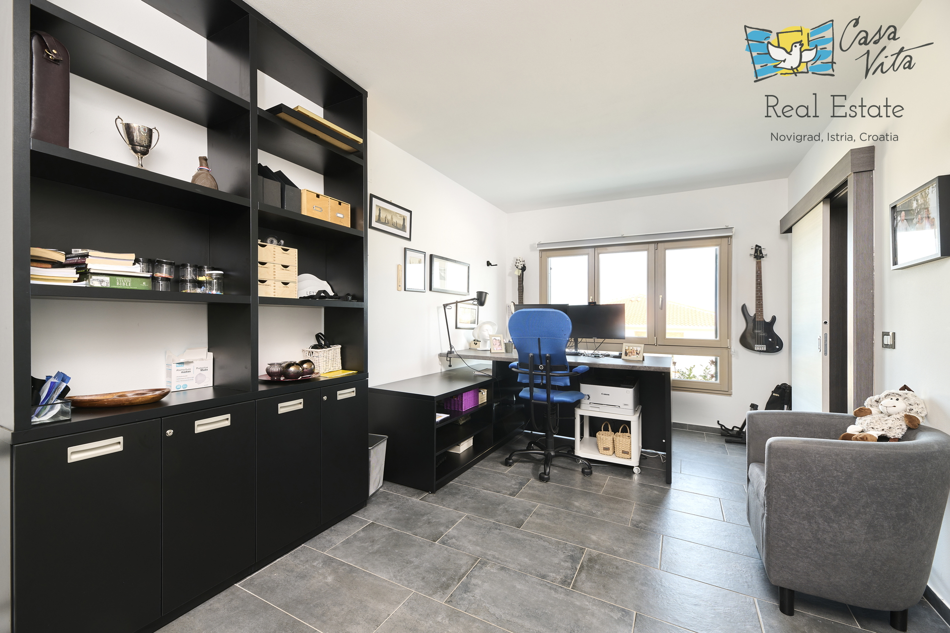 Kuća je izgrađena u stambenom dijelu Umaga, vrlo mirnom, ali opet vrlo blizu centra Umaga i obale.