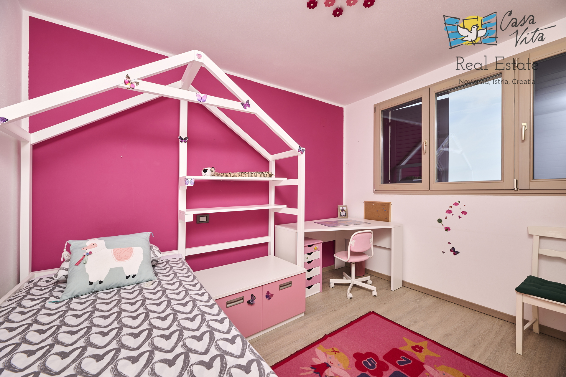 Prvi kat ima 4 spavaće sobe (jedna s vlastitom kupaonicom) i jednu zasebnu kupaonicu.