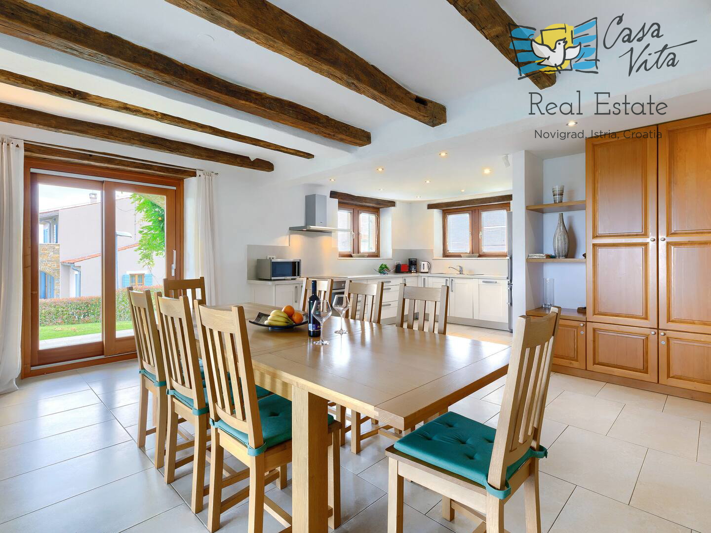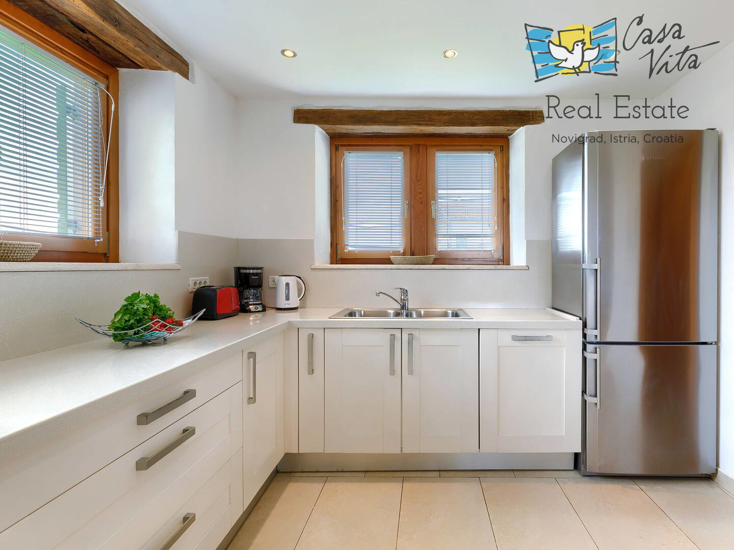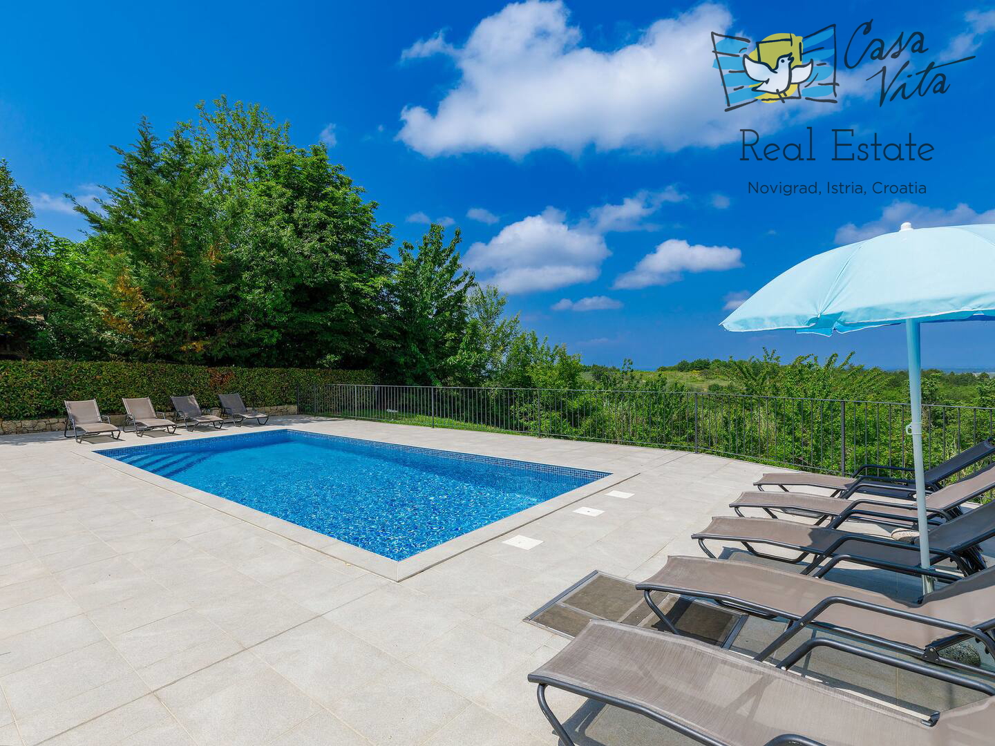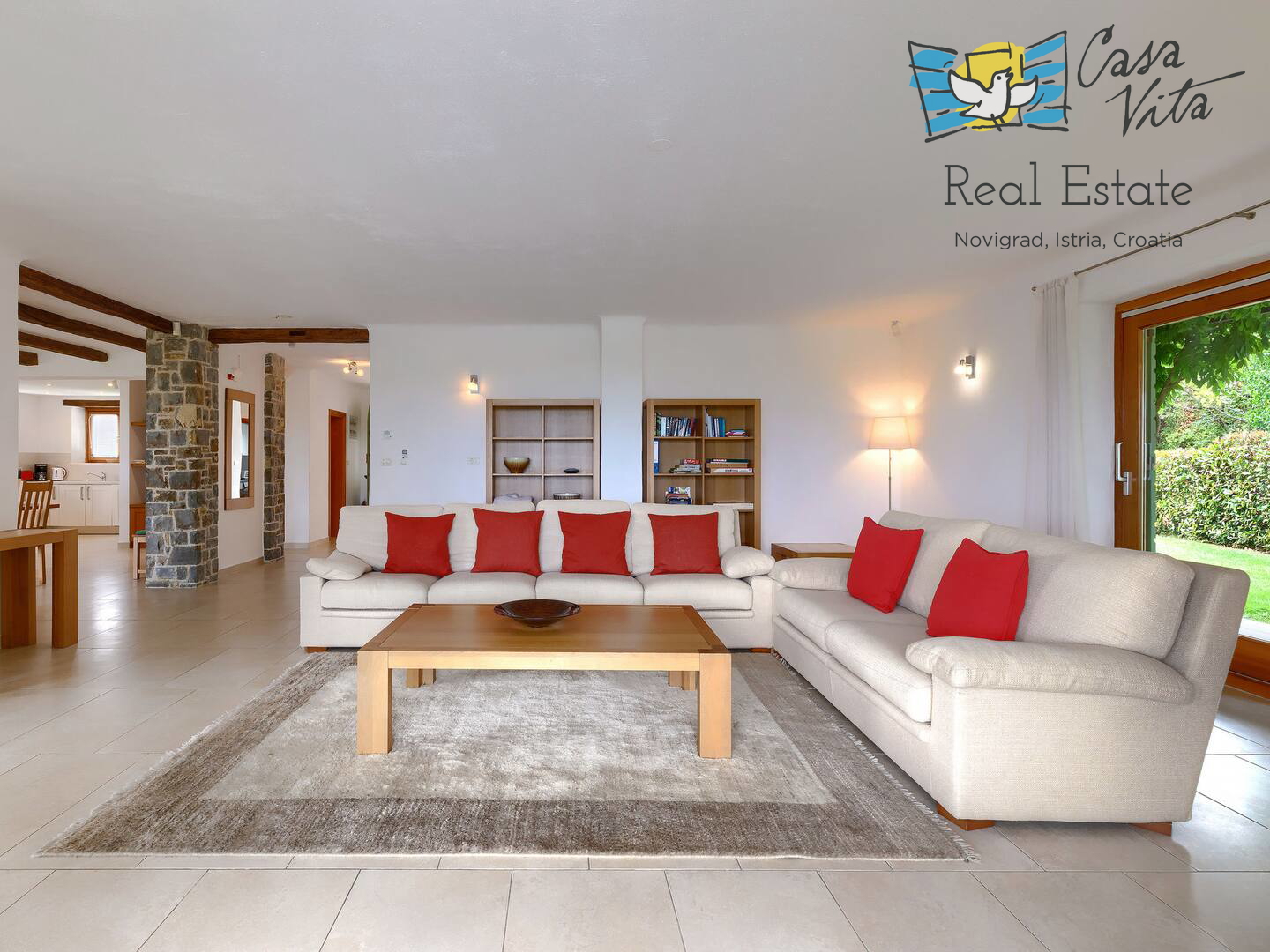Lijepa, raskošna samostojeća kuća površine 250 m2, smještena u mirnom dijelu istarskog poluotoka, u blizini grada Buje. Ova prostrana nekretnina izgrađena je 2010. godine i raspolaže s pet spavaćih soba, što je čini izvrsnim izborom za veće obitelji ili one koji traže dodatni prostor za rad i odmor. Kuća se nalazi na parceli veličine 1270 m2, orijentirana prema jugozapadu, što omogućuje obilje prirodnog svjetla tijekom cijelog dana.
