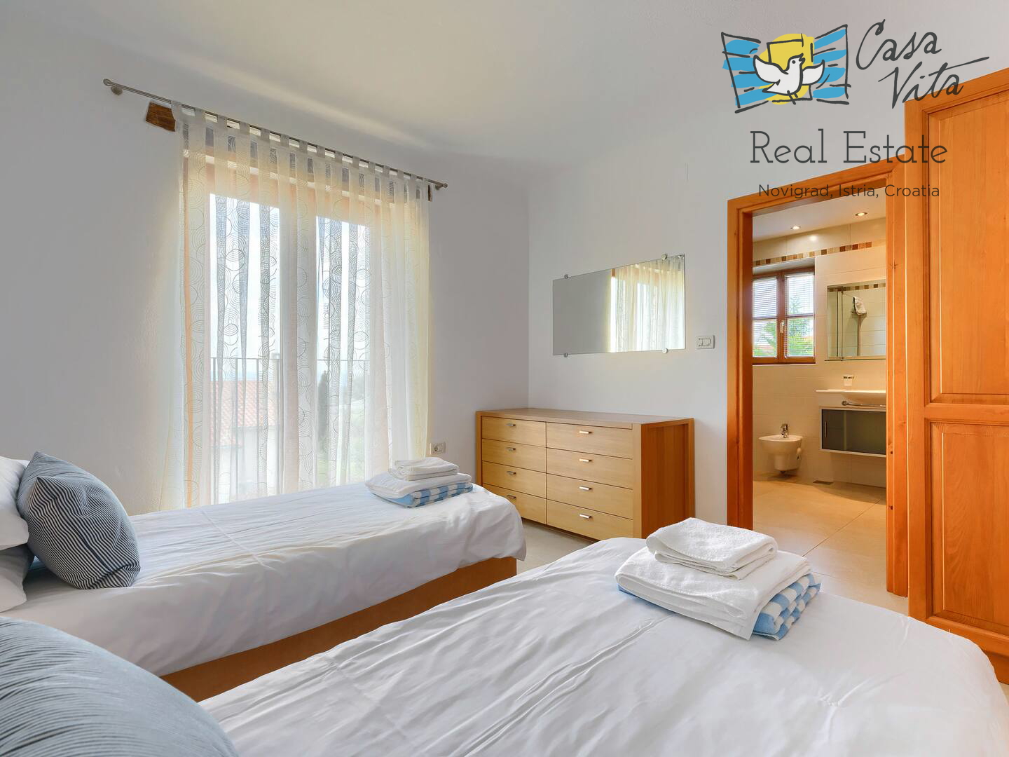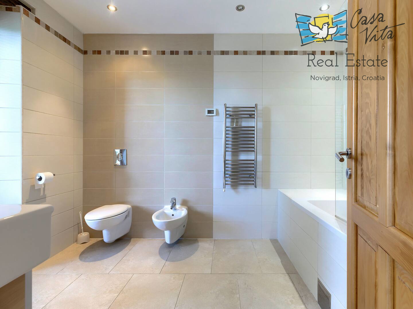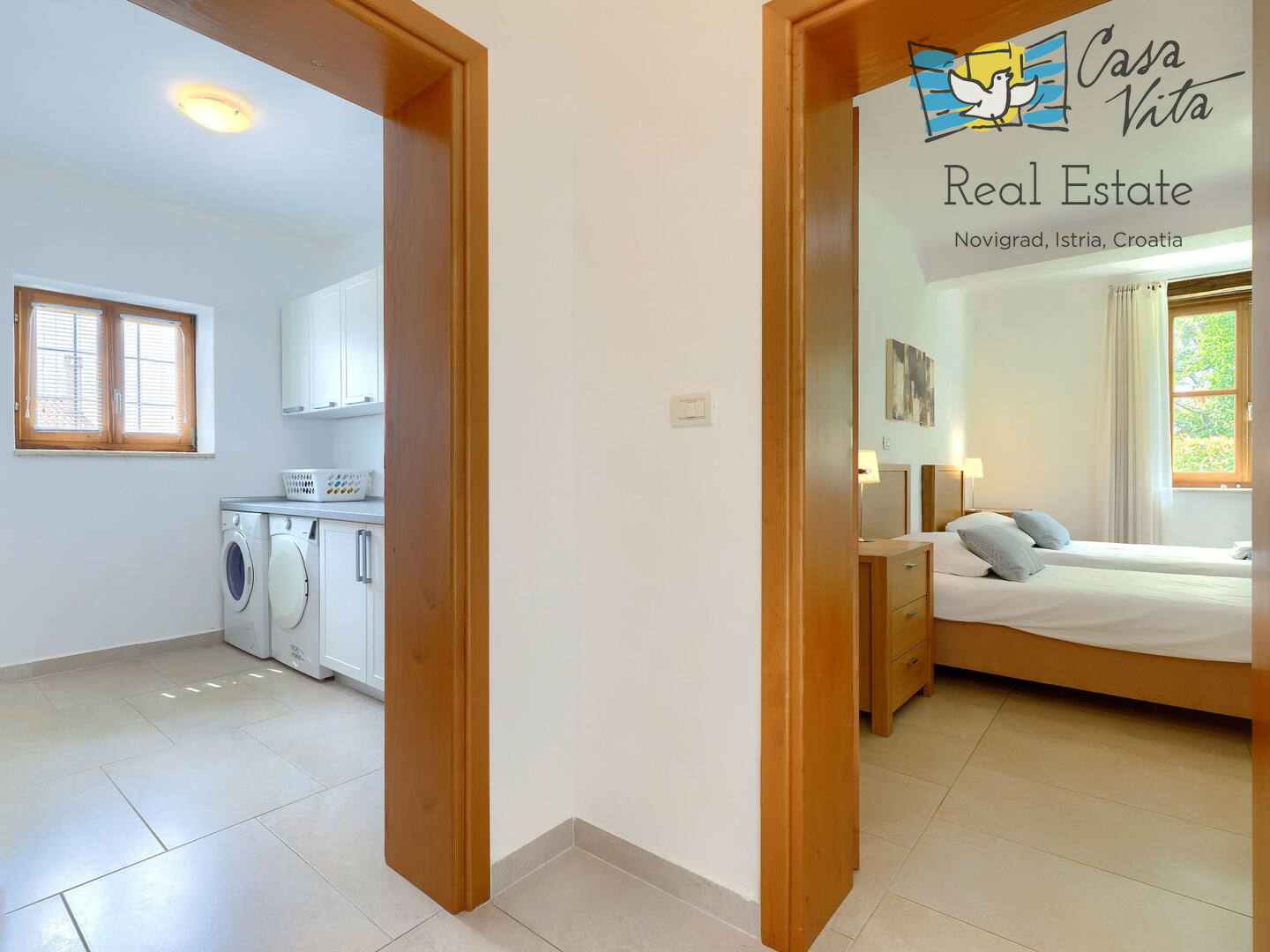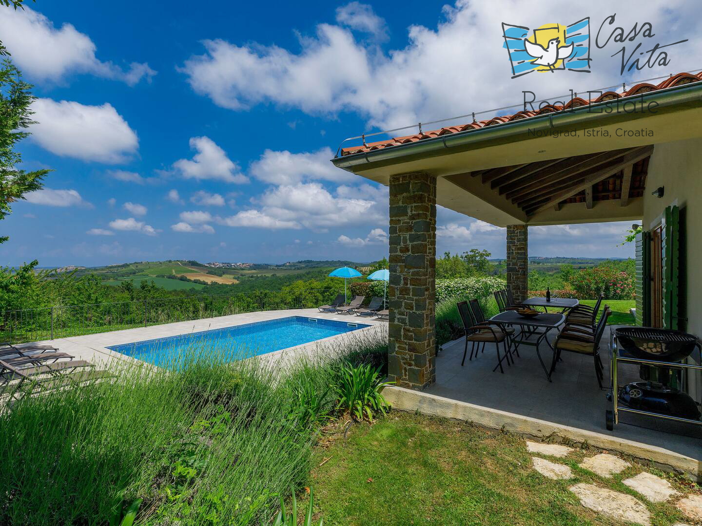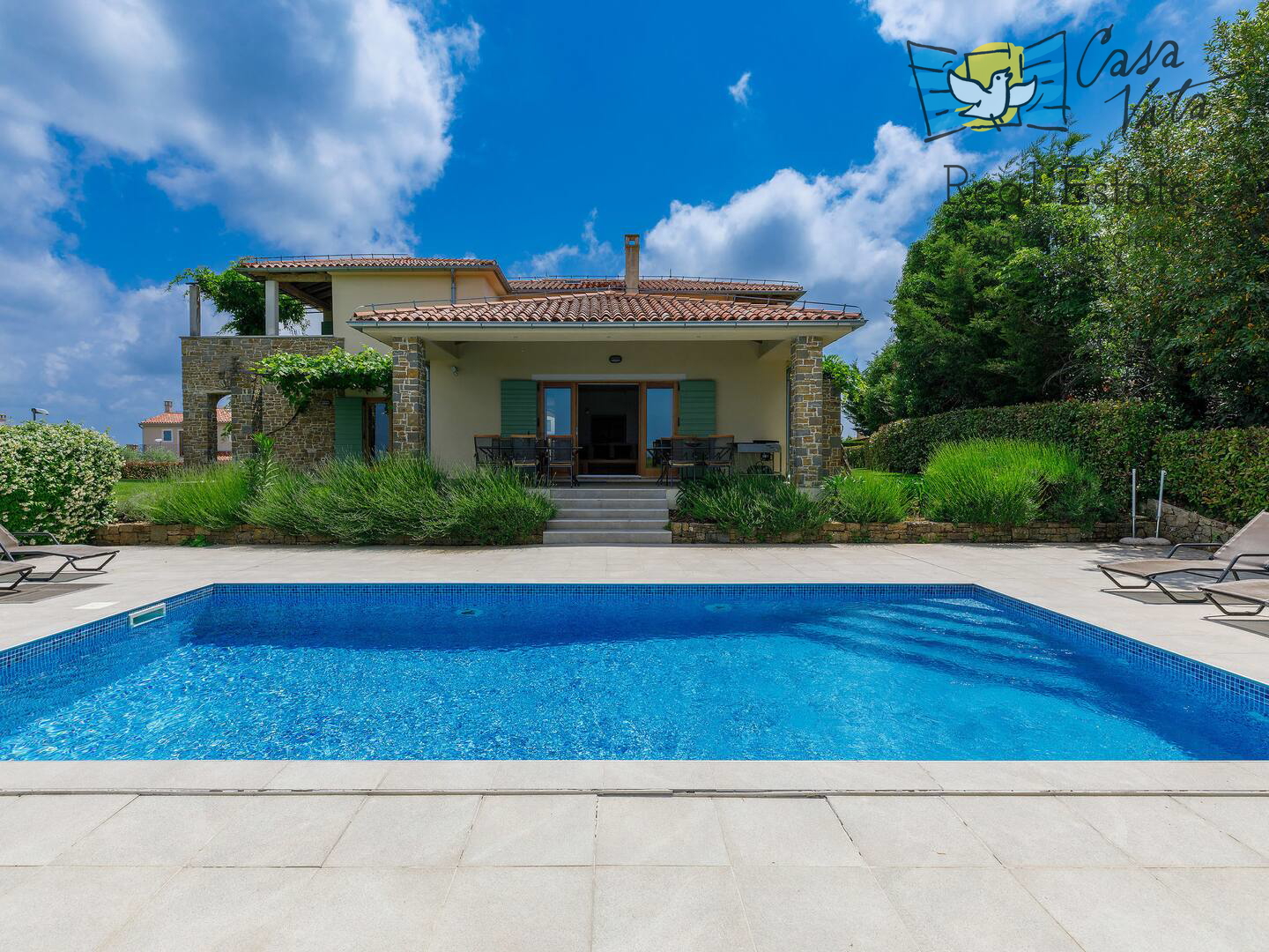 Lijepa, raskošna samostojeća kuća površine 250 m2, smještena u mirnom dijelu istarskog poluotoka, u blizini grada Buje. Ova prostrana nekretnina izgrađena je 2010. godine i raspolaže s pet spavaćih soba, što je čini izvrsnim izborom za veće obitelji ili one koji traže dodatni prostor za rad i odmor. Kuća se nalazi na parceli veličine 1270 m2, orijentirana prema jugozapadu, što omogućuje obilje prirodnog svjetla tijekom cijelog dana.
