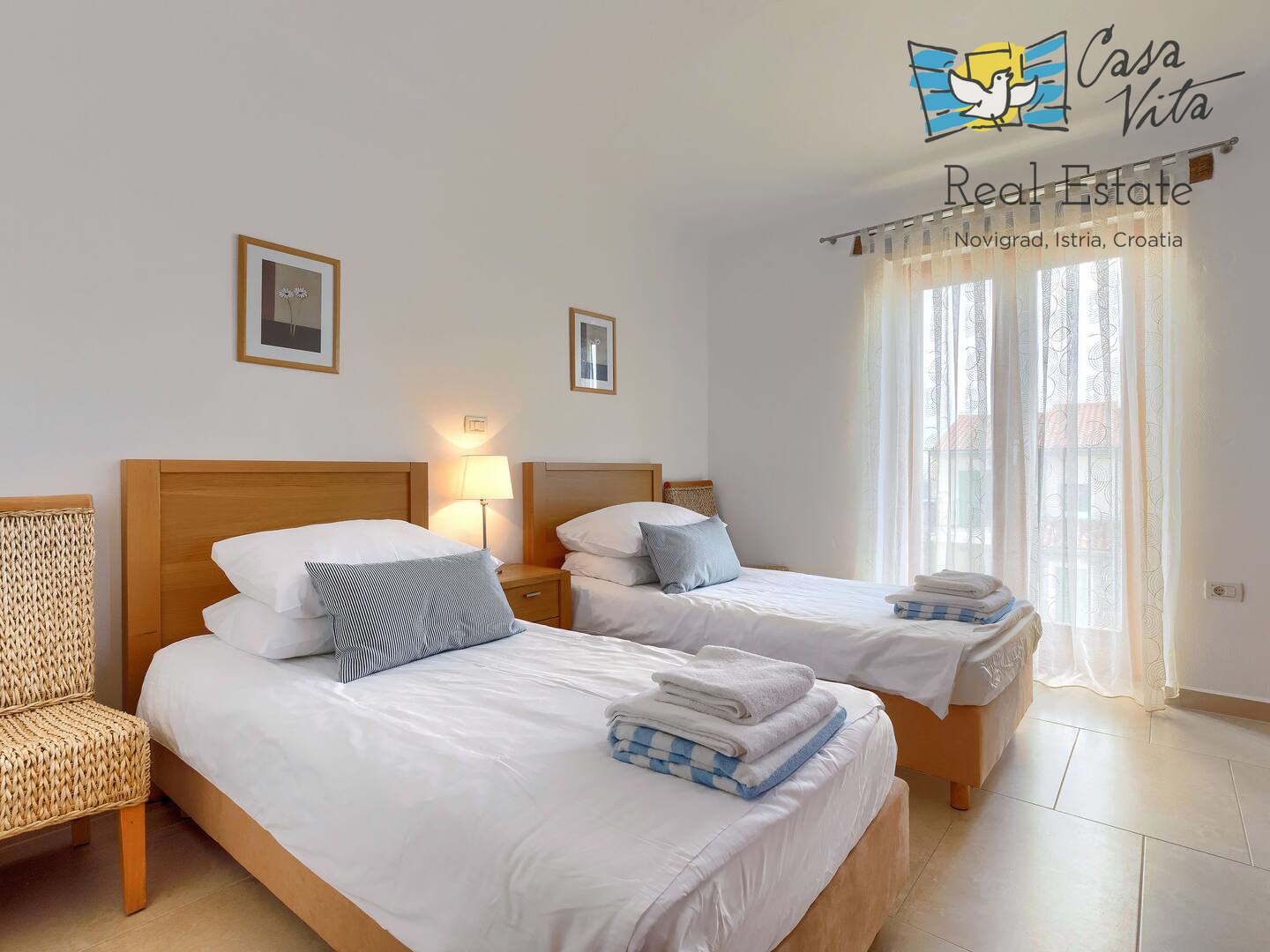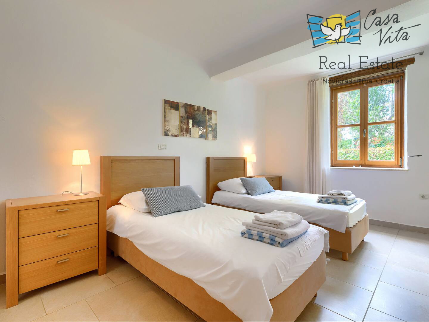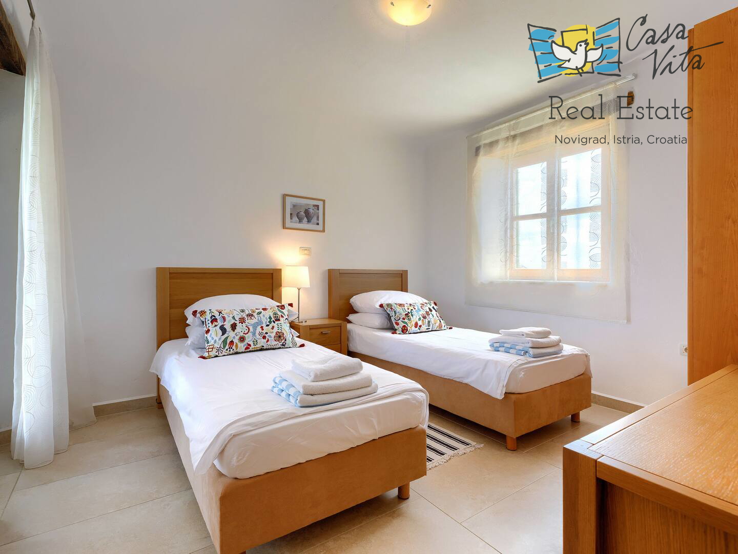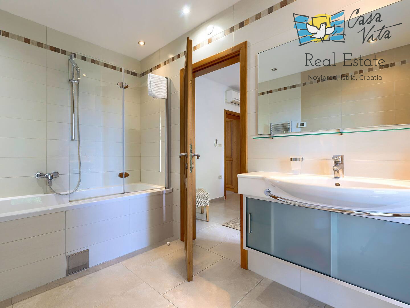 Lijepa, raskošna samostojeća kuća površine 250 m2, smještena u mirnom dijelu istarskog poluotoka, u blizini grada Buje. Ova prostrana nekretnina izgrađena je 2010. godine i raspolaže s pet spavaćih soba, što je čini izvrsnim izborom za veće obitelji ili one koji traže dodatni prostor za rad i odmor. Kuća se nalazi na parceli veličine 1270 m2, orijentirana prema jugozapadu, što omogućuje obilje prirodnog svjetla tijekom cijelog dana.