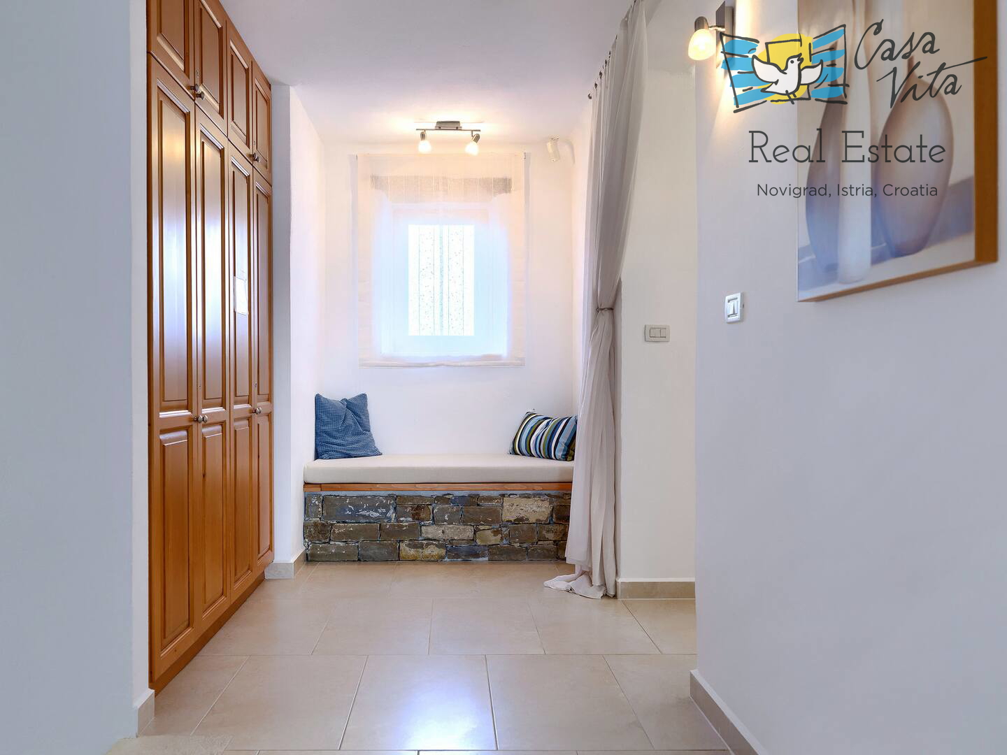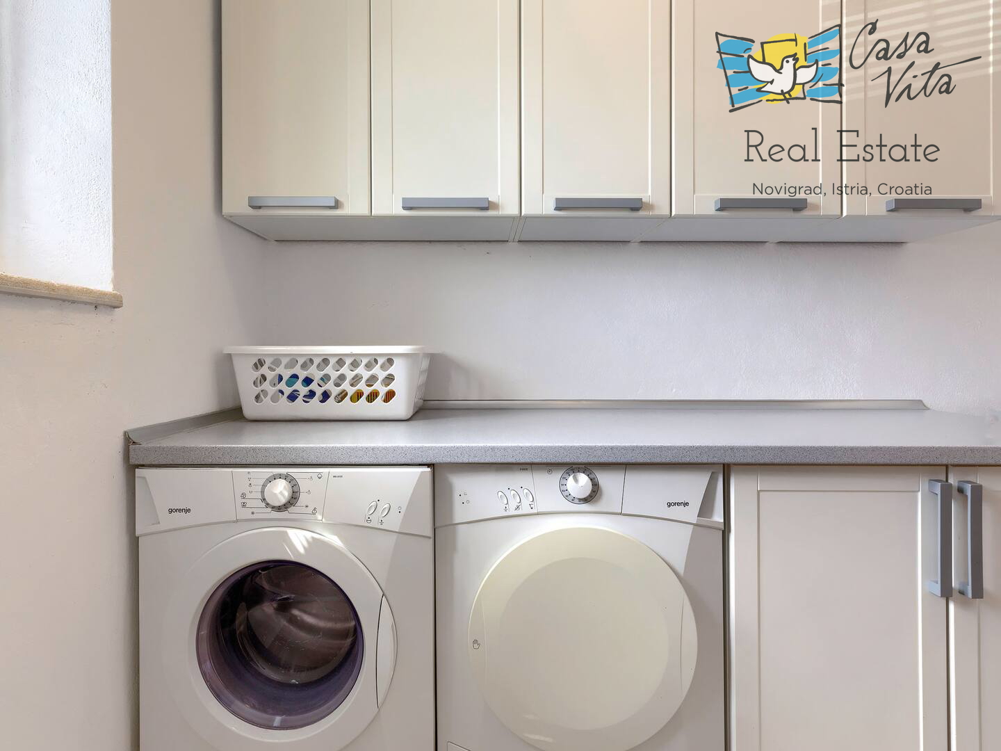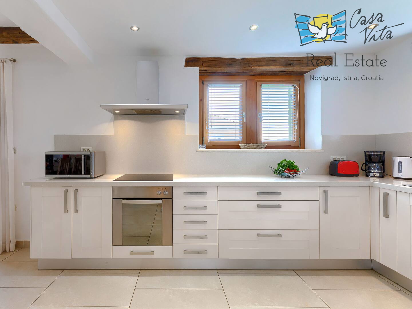 Posebnu vrijednost ovoj kamenoj kući daje pažljivo uređena okućnica s bazenom i roštiljem, idealna za opuštanje i druženje na otvorenom. Prostrana terasa i balkon nude prekrasan pogled na more i okolnu prirodu, dok dvorište pruža dodatni prostor za uživanje u zelenilu. Unutrašnjost je opremljena kuhinjom s aparatima, perilicom posuđa, perilicom rublja, kadom, TV-om, krevetima i radnim stolom, što dodatno doprinosi udobnosti svakodnevnog života.