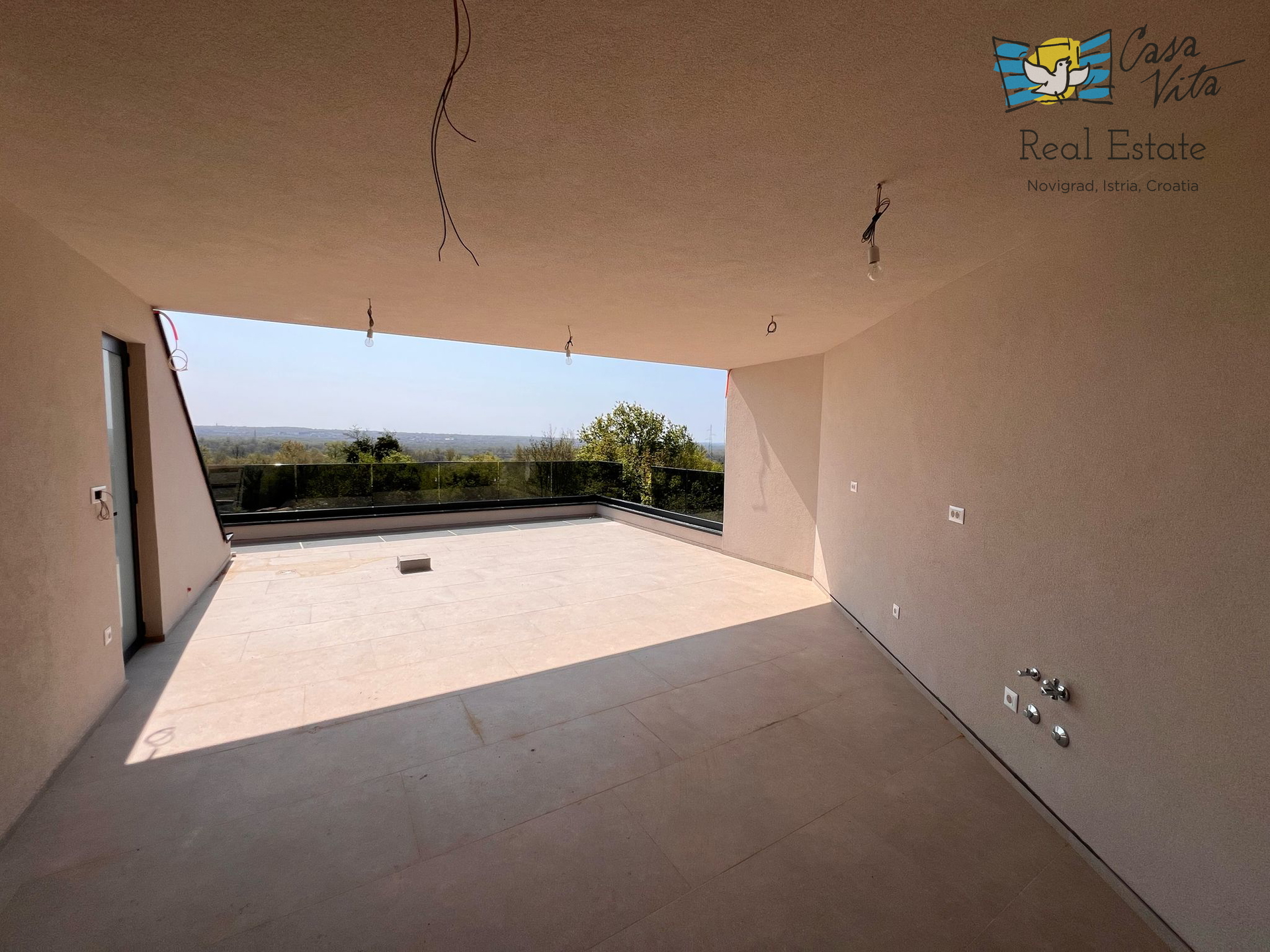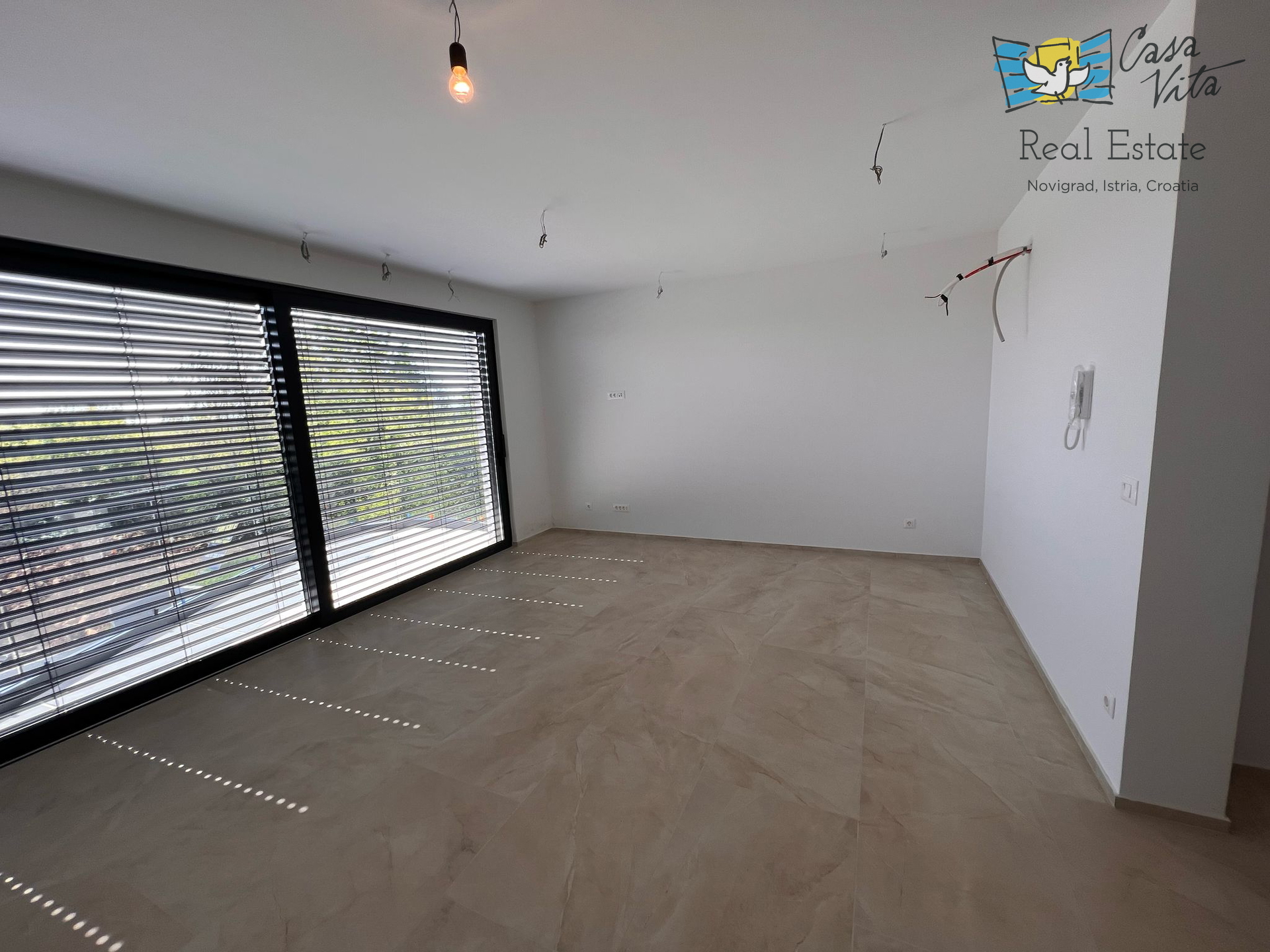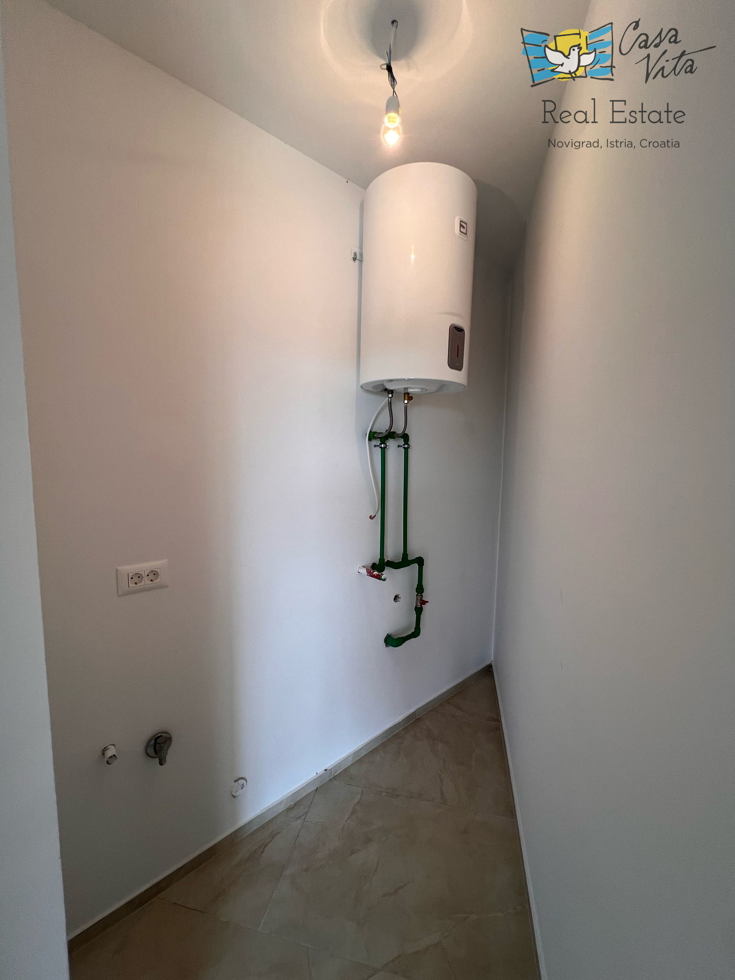Квартира выделяется функциональной планировкой с одной спальней и юго-западной ориентацией, что обеспечивает изобилие естественного света в течение всего дня. Дополнительный комфорт создают балкон площадью 7 м2 и крытая терраса площадью 26 м2, на которой расположены все подключения для летней кухни, джакузи и уже оборудованный туалет. Просторная терраса идеально подходит для отдыха с прекрасным видом на природу и море.