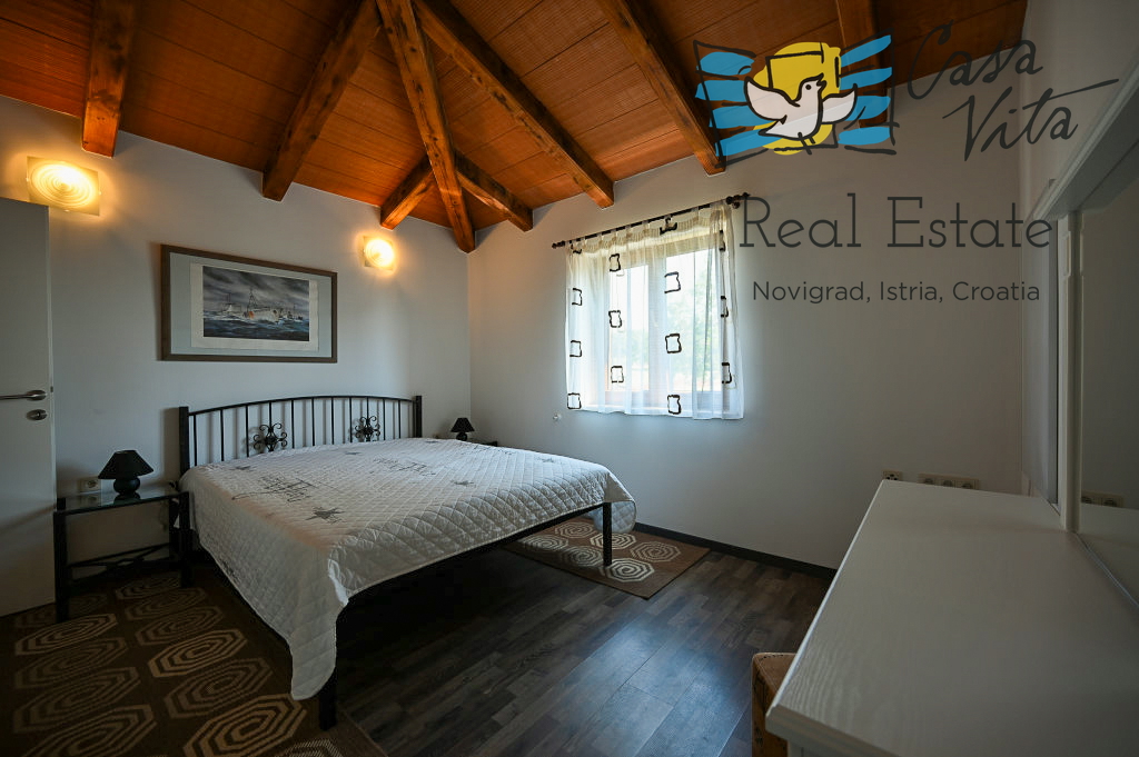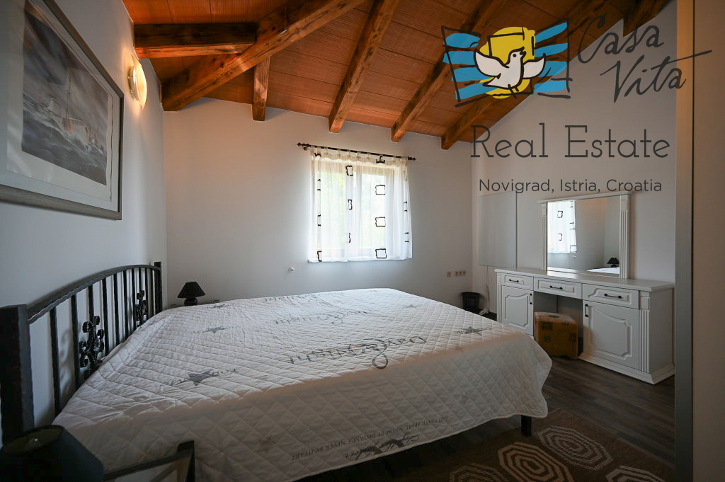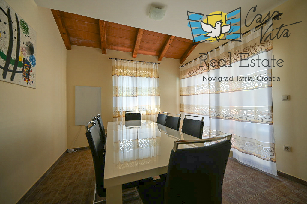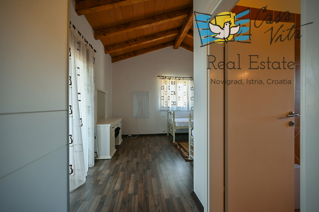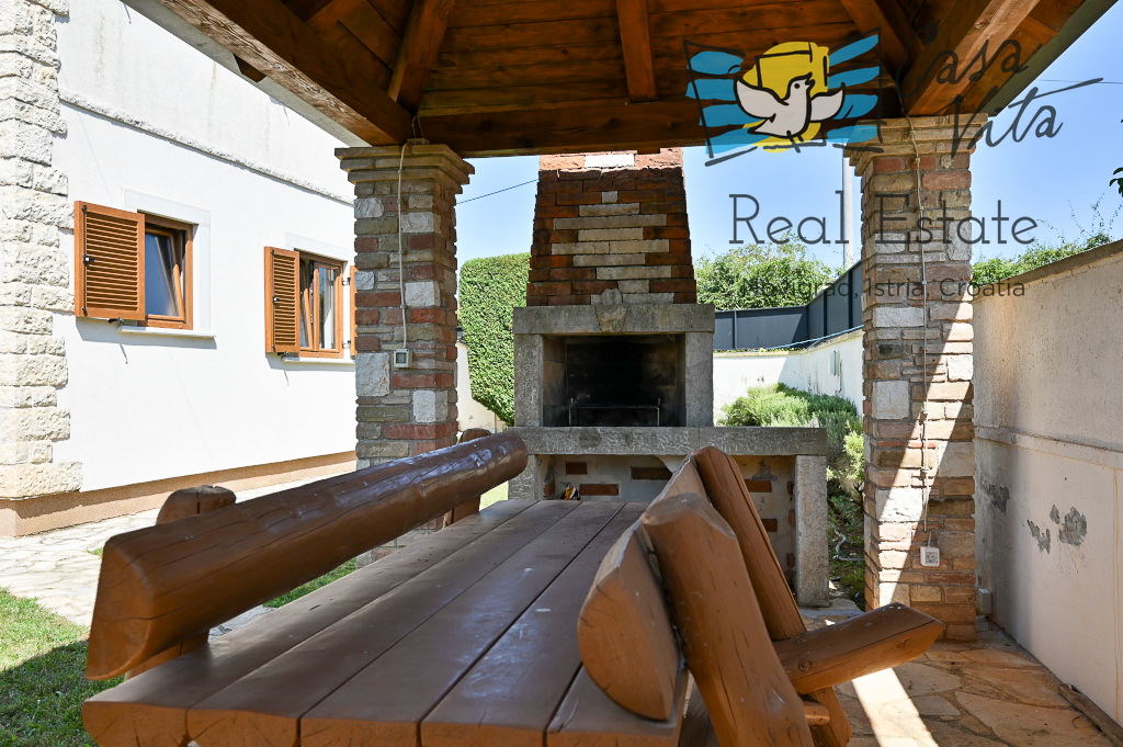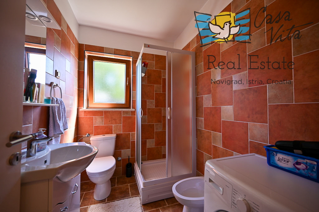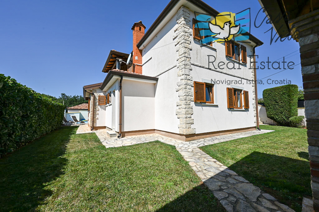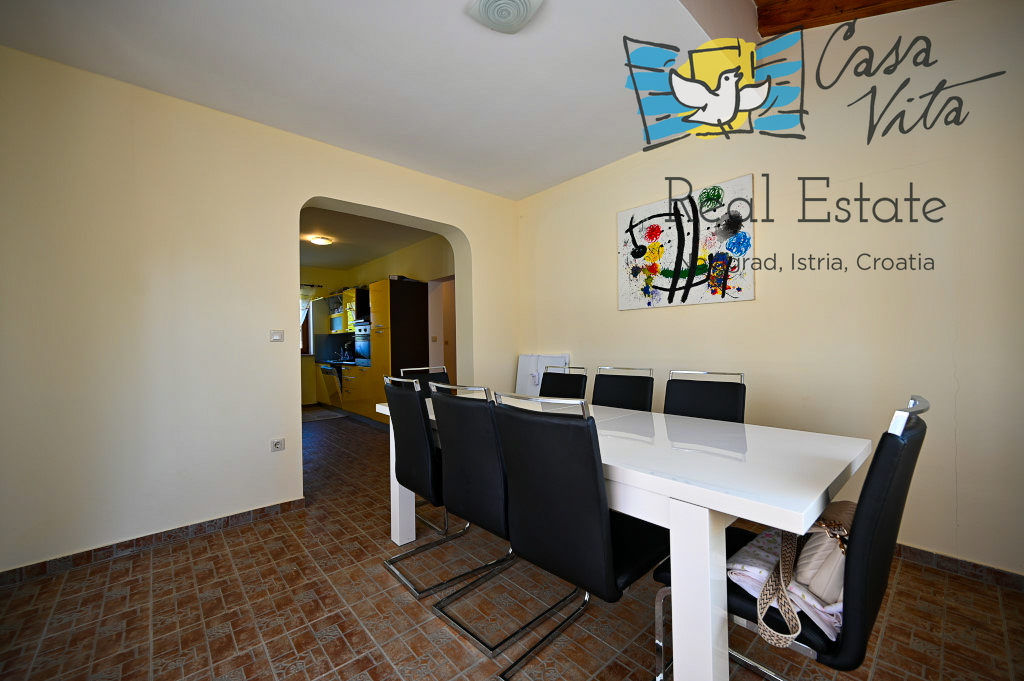 Продаётся отдельно стоящий дом площадью 160 м2, расположенный на участке 620 м2 в тихом районе Вижинада, в 15 км от города Пореч. Этот каменный дом построен в 2012 году и представляет отличную возможность для тех, кто ищет комфортный дом с множеством удобств.