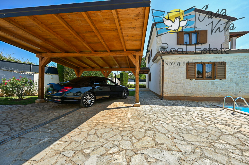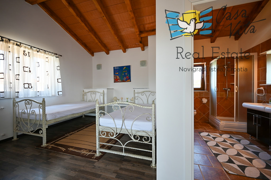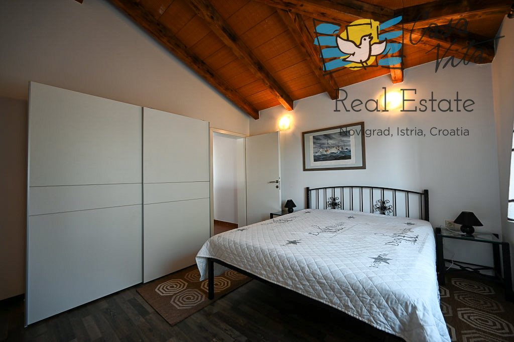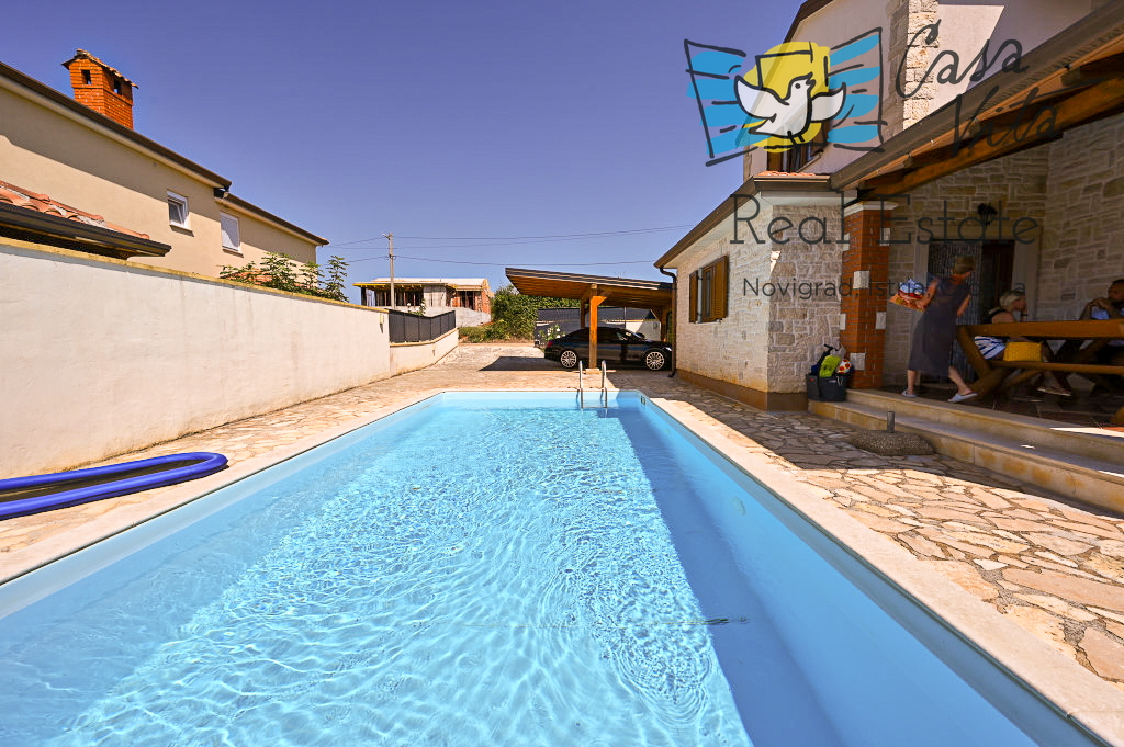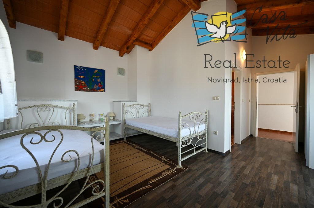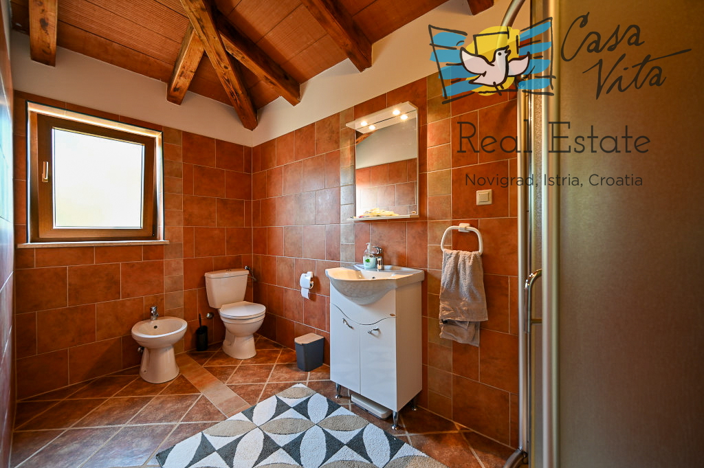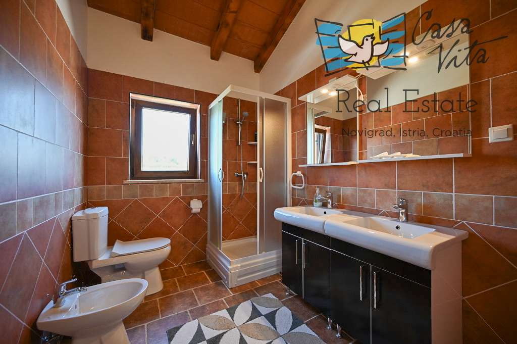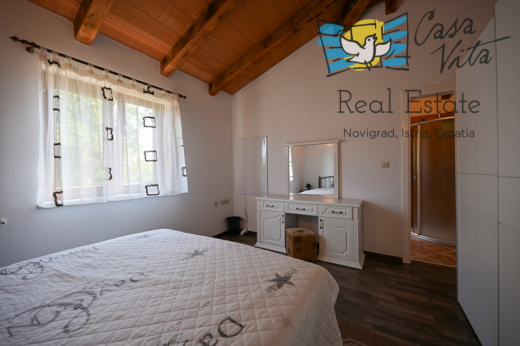 Продаётся отдельно стоящий дом площадью 160 м2, расположенный на участке 620 м2 в тихом районе Вижинада, в 15 км от города Пореч. Этот каменный дом построен в 2012 году и представляет отличную возможность для тех, кто ищет комфортный дом с множеством удобств.