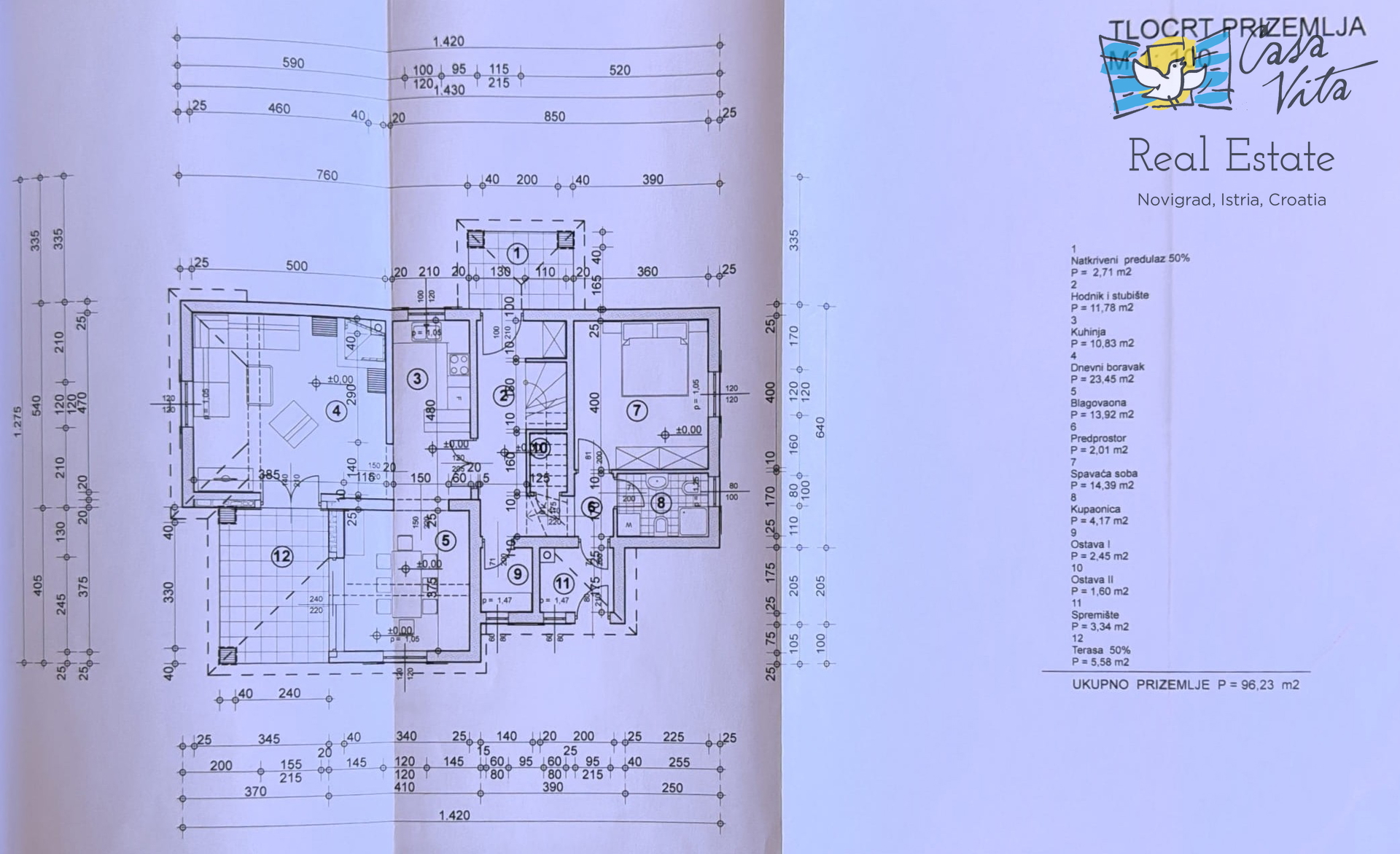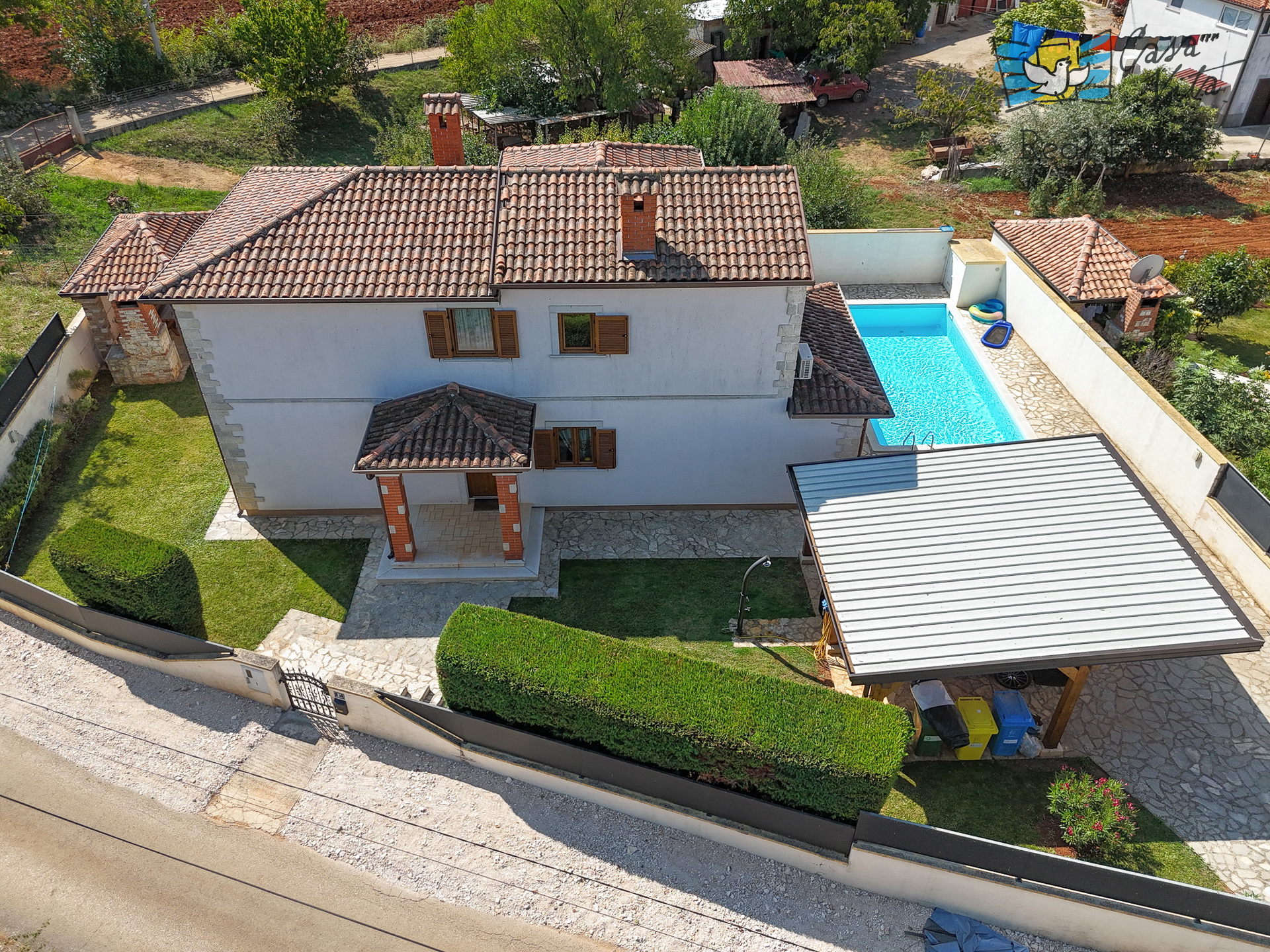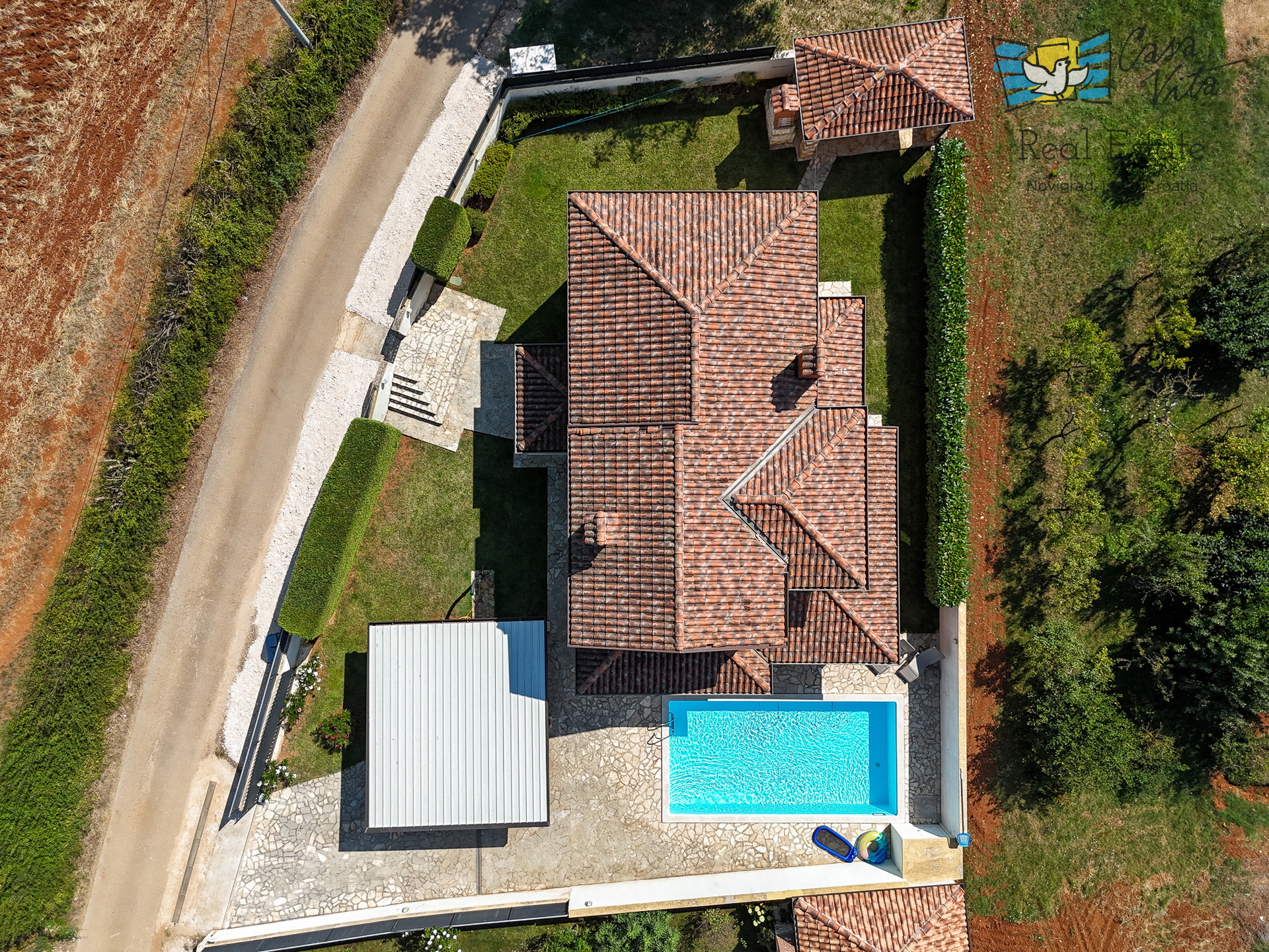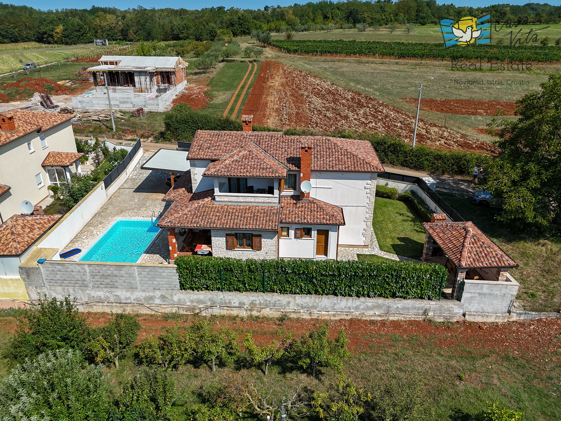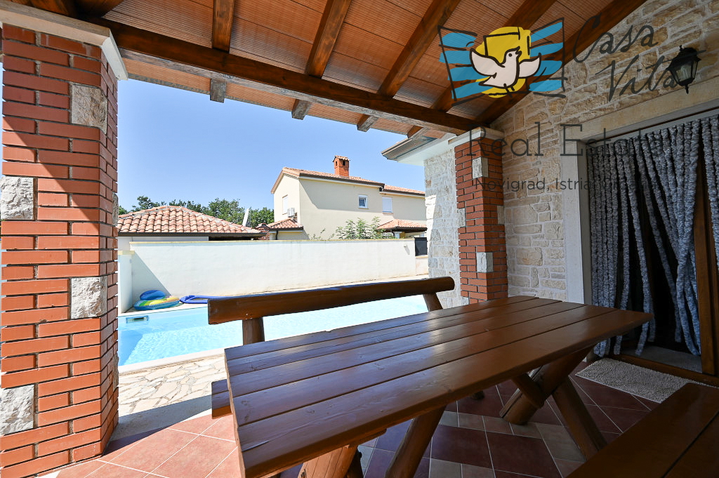 Продаётся отдельно стоящий дом площадью 160 м2, расположенный на участке 620 м2 в тихом районе Вижинада, в 15 км от города Пореч. Этот каменный дом построен в 2012 году и представляет отличную возможность для тех, кто ищет комфортный дом с множеством удобств.