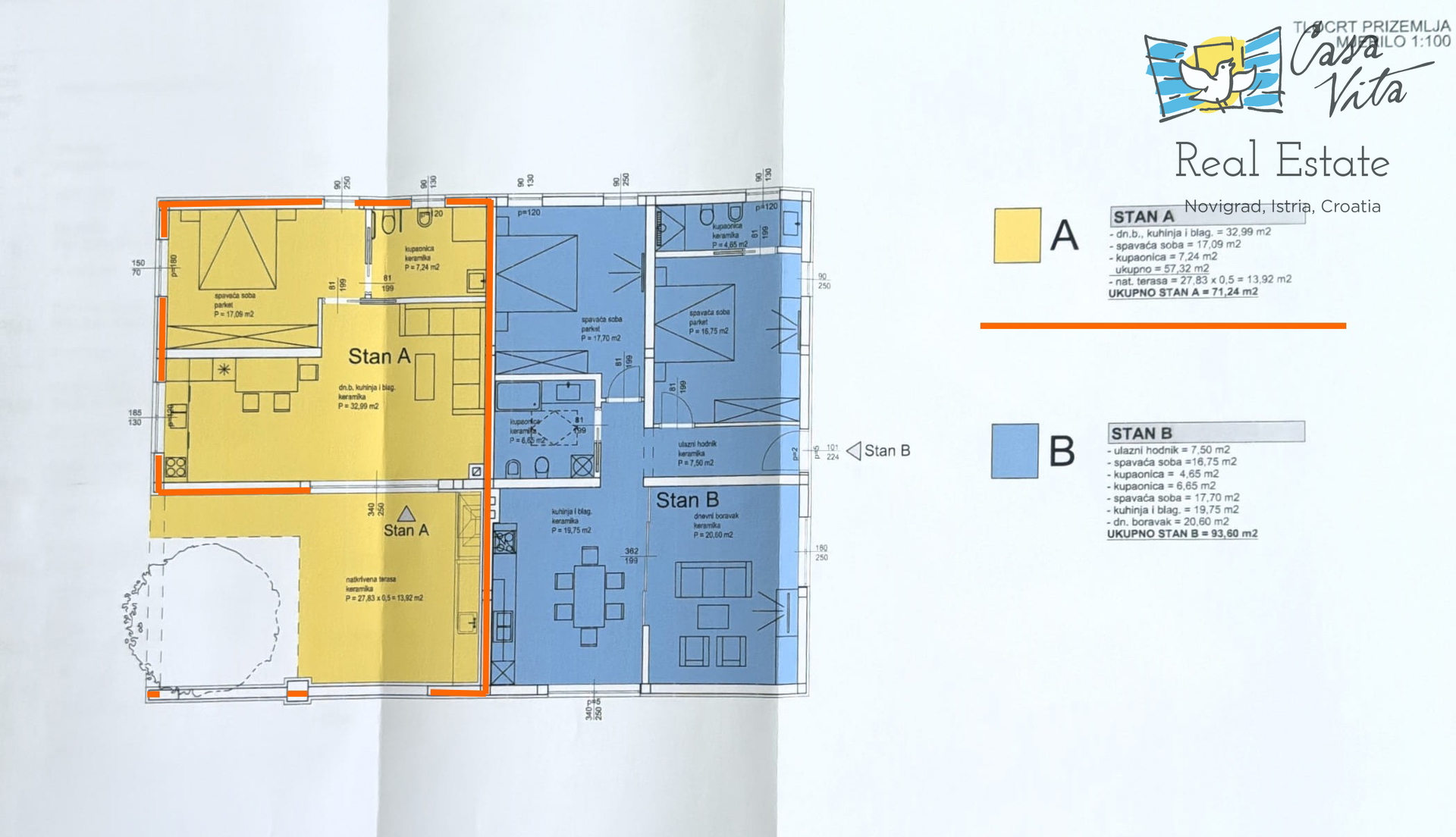 На продажу предлагается двойной дом площадью 95,15 м2, расположенный в тихом районе Новиграда, построенный в 2020 году. Эта недвижимость сочетает современную архитектуру и функциональную планировку, идеально подходит для тех, кто ищет комфортный дом недалеко от моря, а также для тех, кто хочет надежную инвестицию в привлекательном месте.
