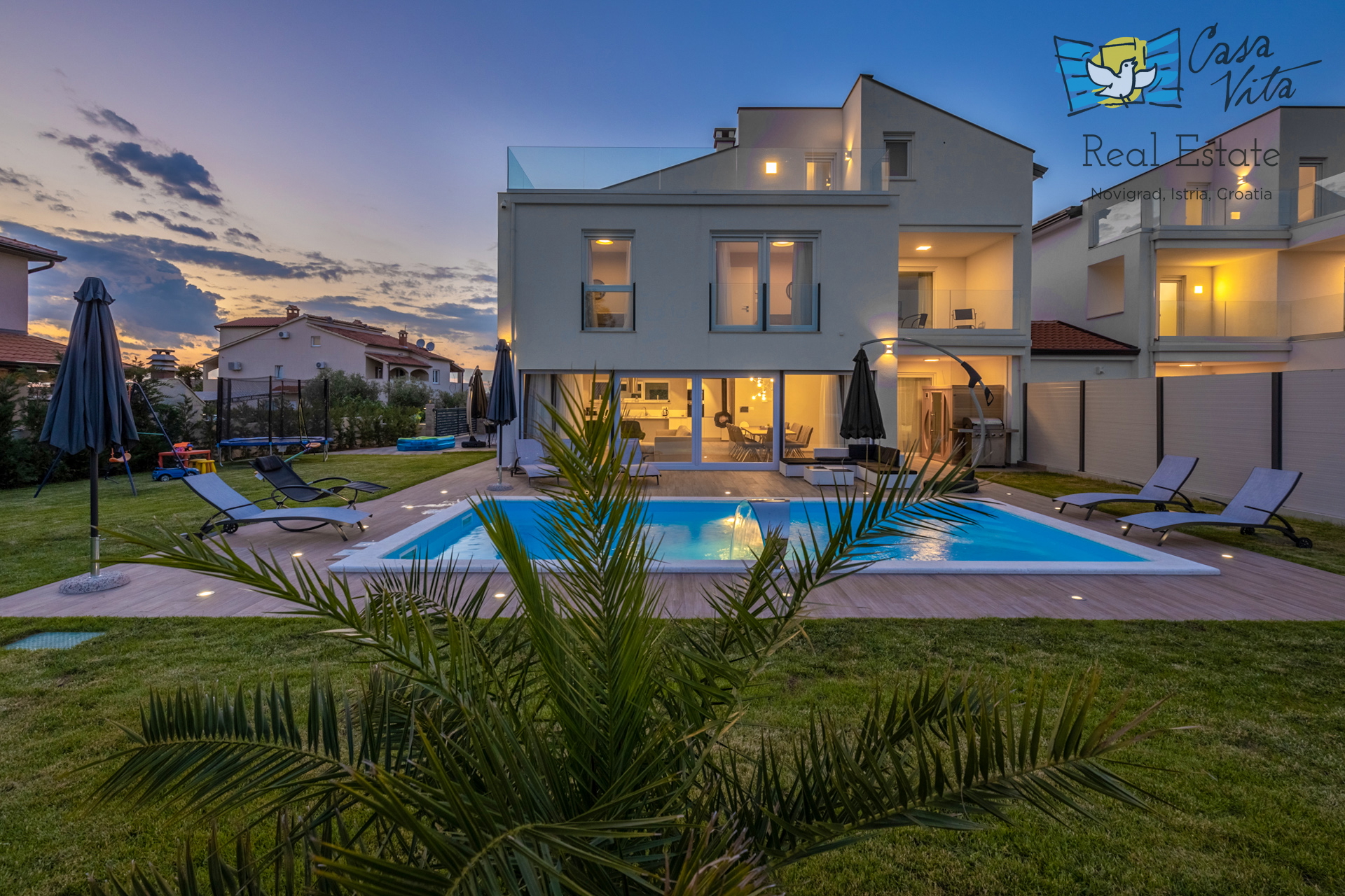Ta moderna vila dvojček v bližini Poreča je lahko popolnoma oboje, odvisno od vaših želja.