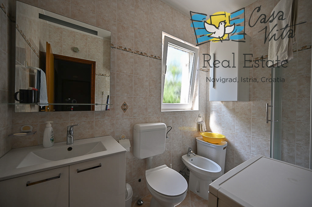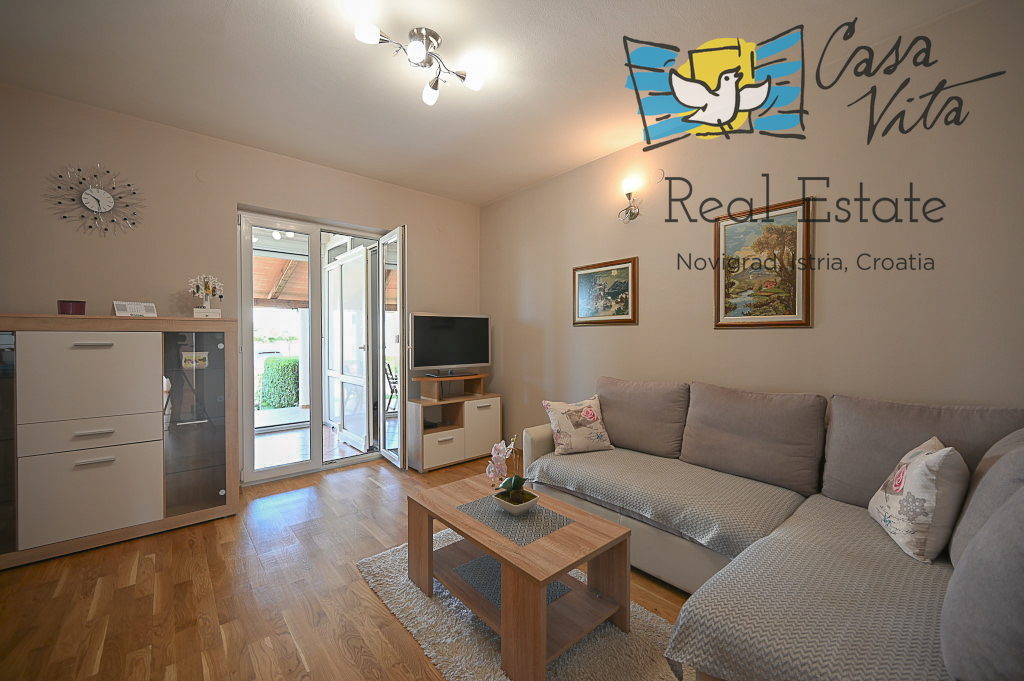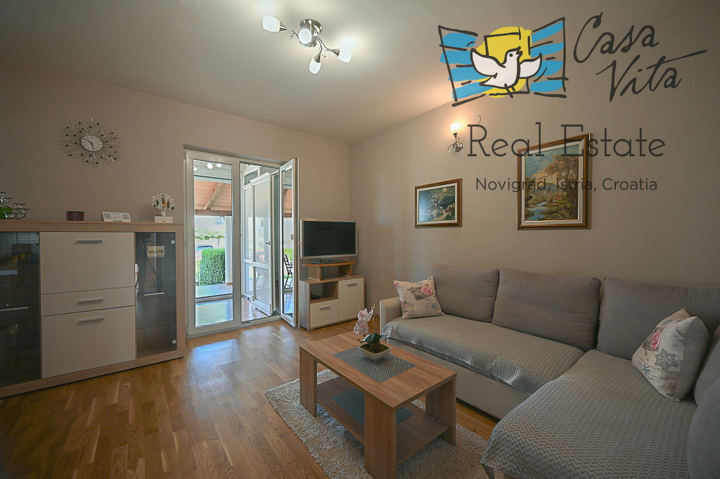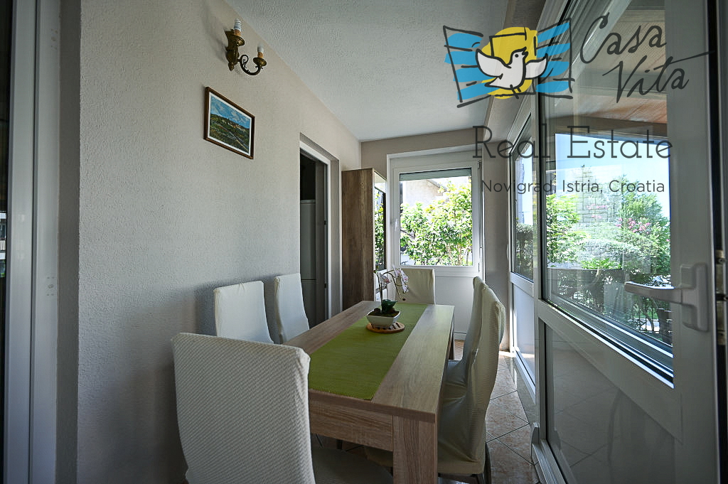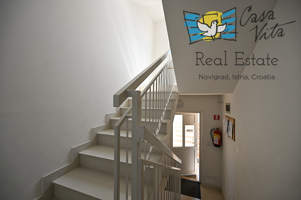 Prodaja se stanovanje površine 61 m2 v pritličju večstanovanjske stavbe, tipa 2,5-prostorsko (2S+DB), locirano na mirni in atraktivni lokaciji, 600 m od morja in 1000 m od centra mesta Novigrad.